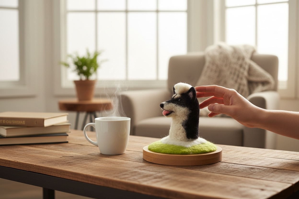 我們將從最基本的工具和材料準備開始,讓你熟悉羊毛、刺針和底座等工具。接著,我們會一步步帶你塑造柴犬頭部的基本輪廓,精心調整耳朵、眼睛和嘴巴的比例。在掌握基礎後,會進入細節刻畫,包括上色、層次感以及可愛的浴巾,讓每個表情都栩栩如生。最後,把作品穩固地固定在木質杯墊上,讓每位學員都能帶回一隻獨一無二、充滿愛意的柴犬杯墊。