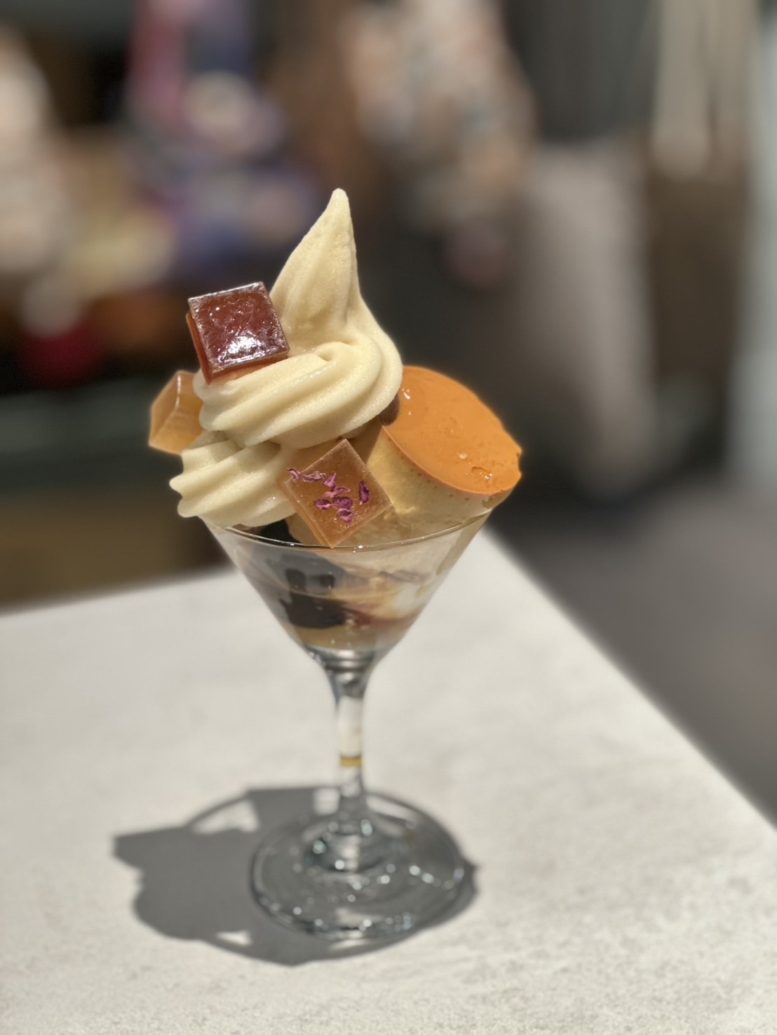 • 質地碰撞: 甜筒脆餅乾的焦香味,與四季春櫻花琥珀糖的初春氣息。
