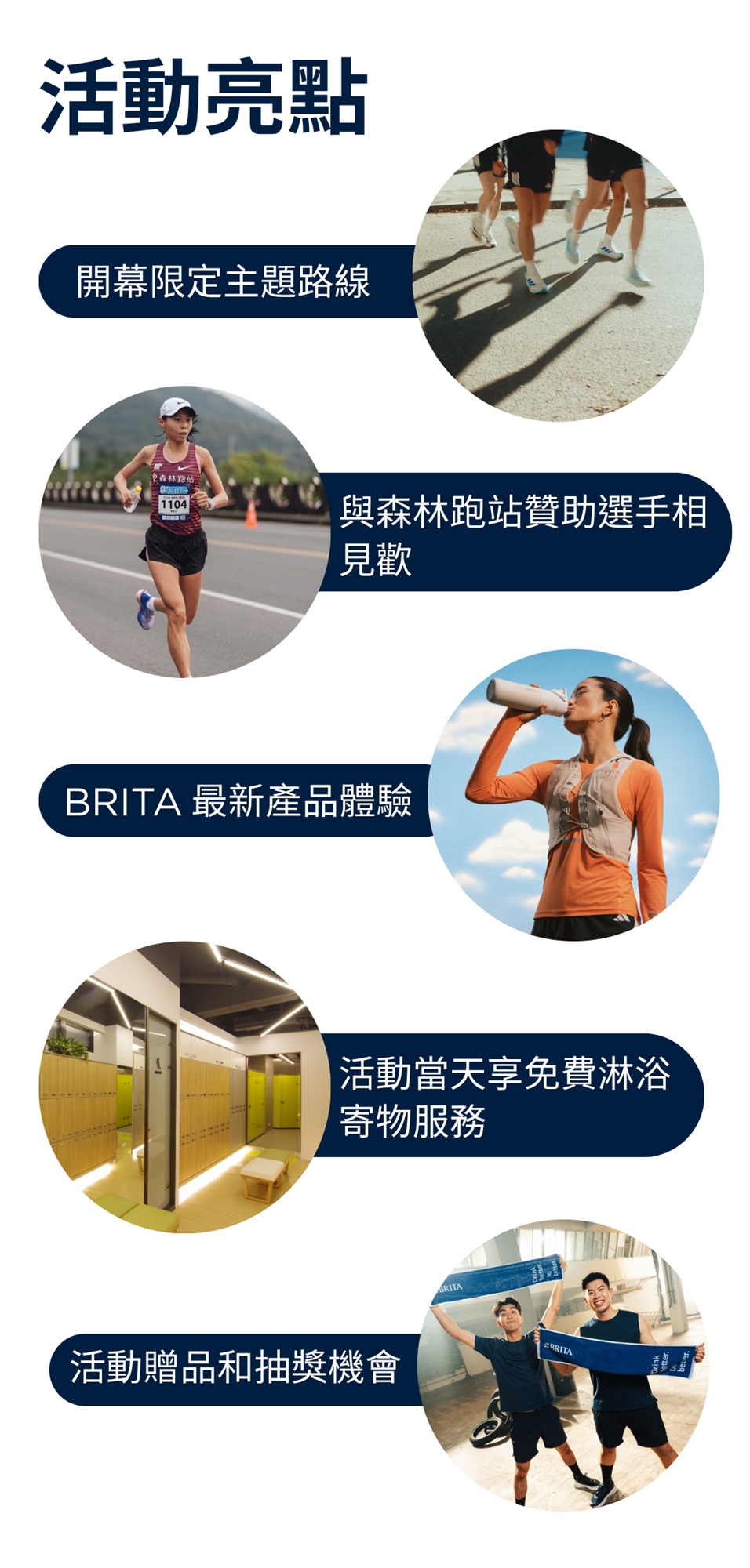 首場「LET'S BRITA 開幕跑」邀請跑者穿梭於大安區街道,用步伐在城市街道間繪製 BRITA 經典路線,一同歡慶品牌 60週年!一起打開 BRITA 好水,一起跑出更好的狀態。