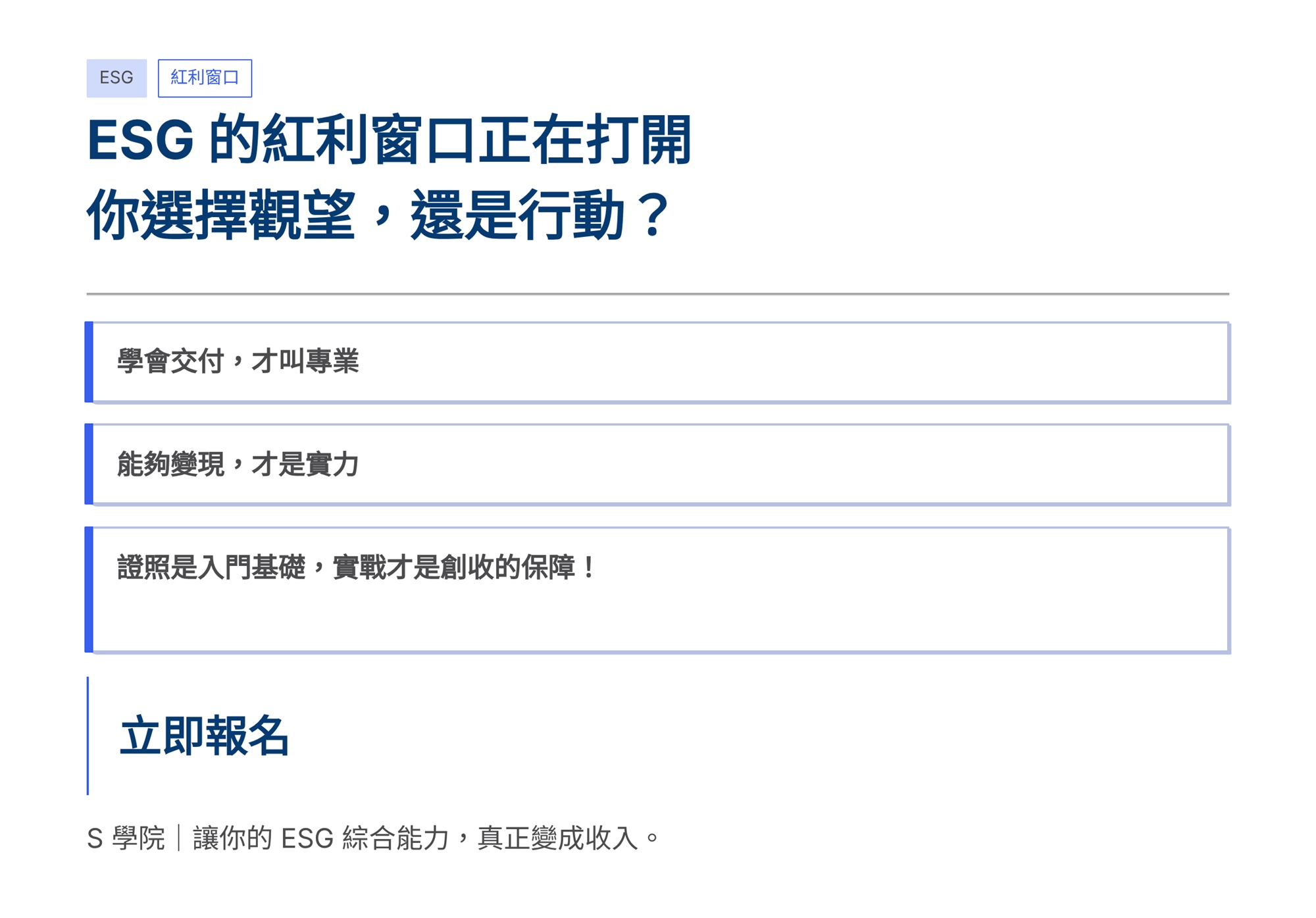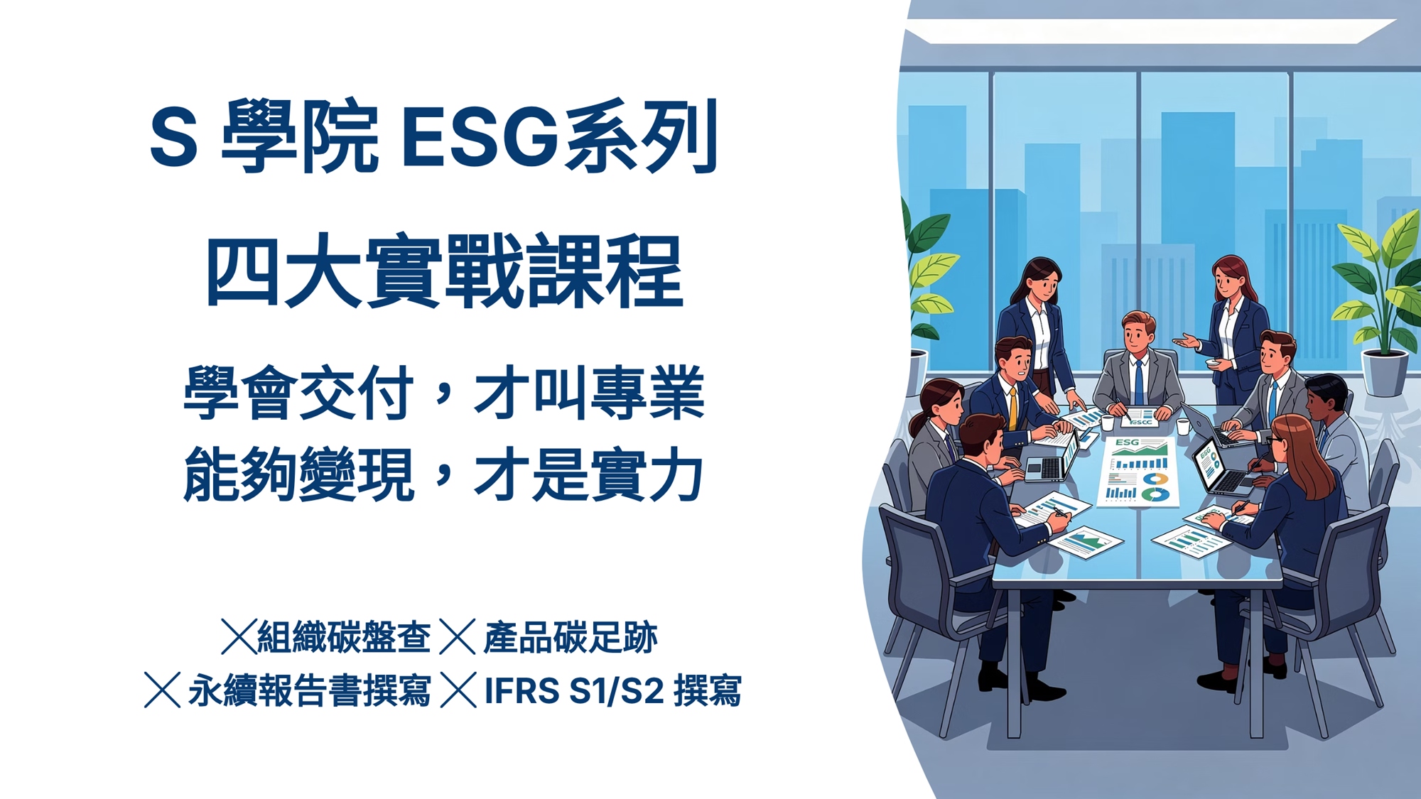 S學院 ESG系列四大實戰課程:「組織碳盤查+產品碳足跡+永續報告書撰寫+IFRS S1/S2撰寫」