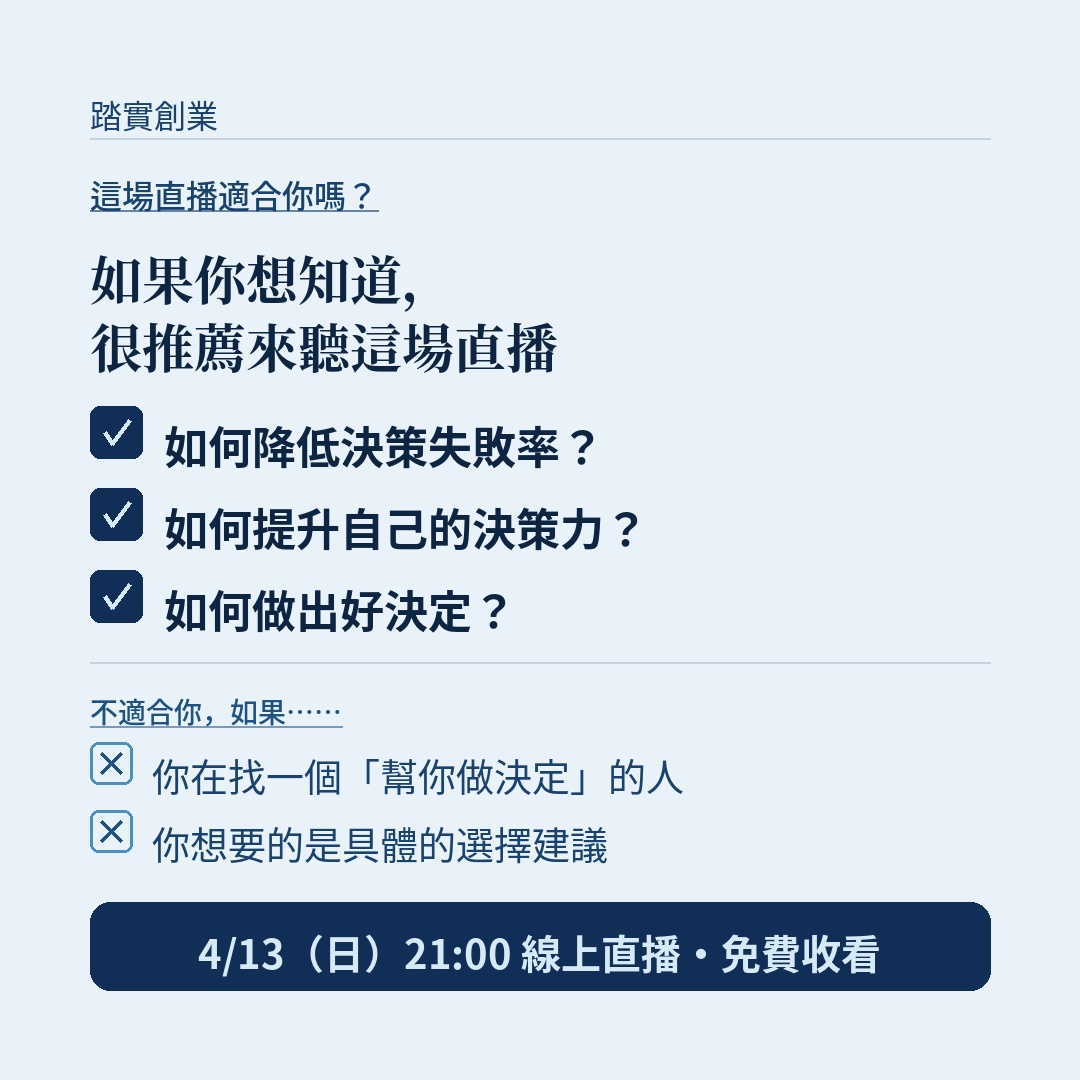 【免費直播】關於決策,6件你可能沒想過的事!