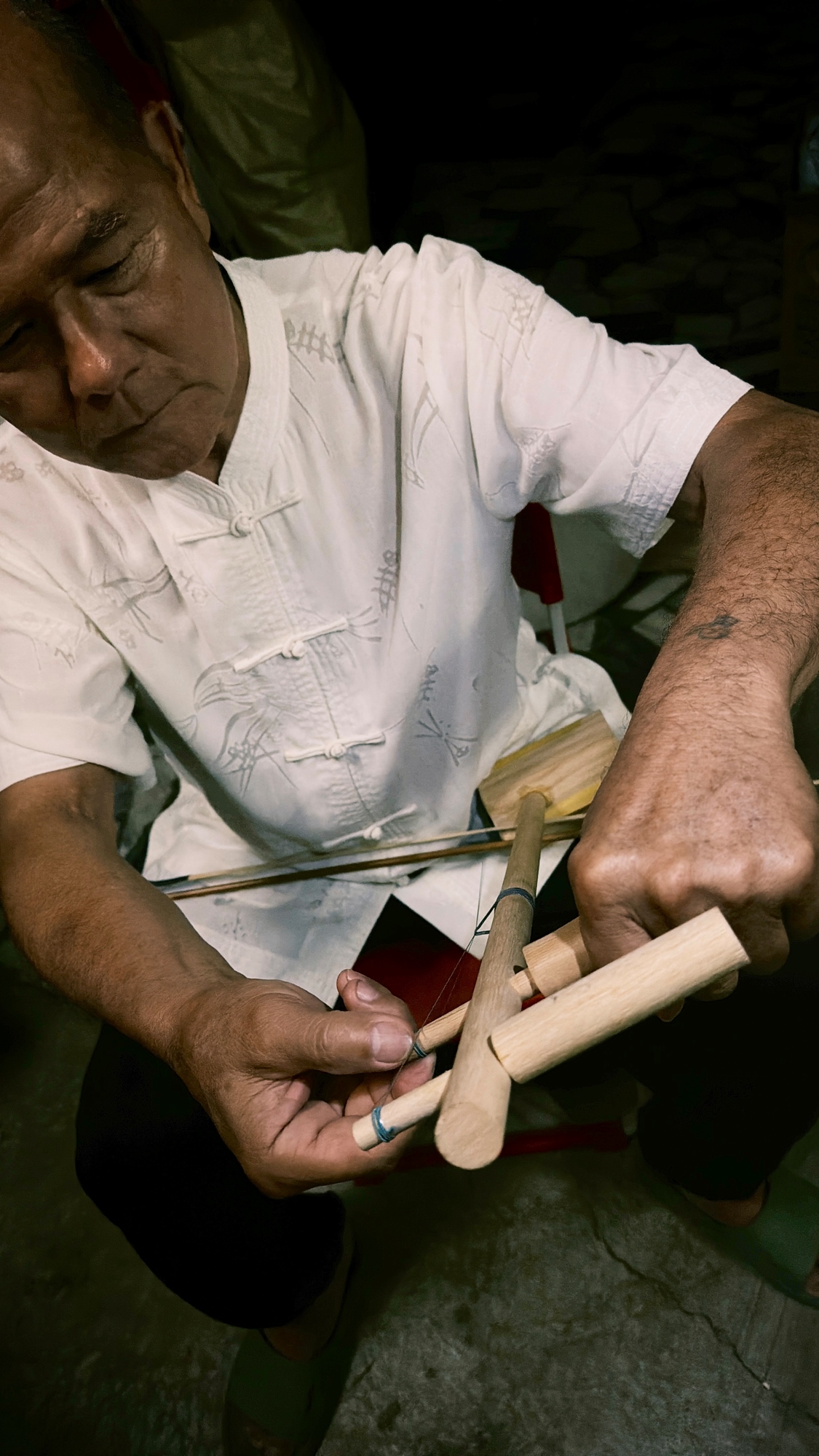 從雙手敲打拼湊,到一隻二胡慢慢成形,最終得以拉出一聲
