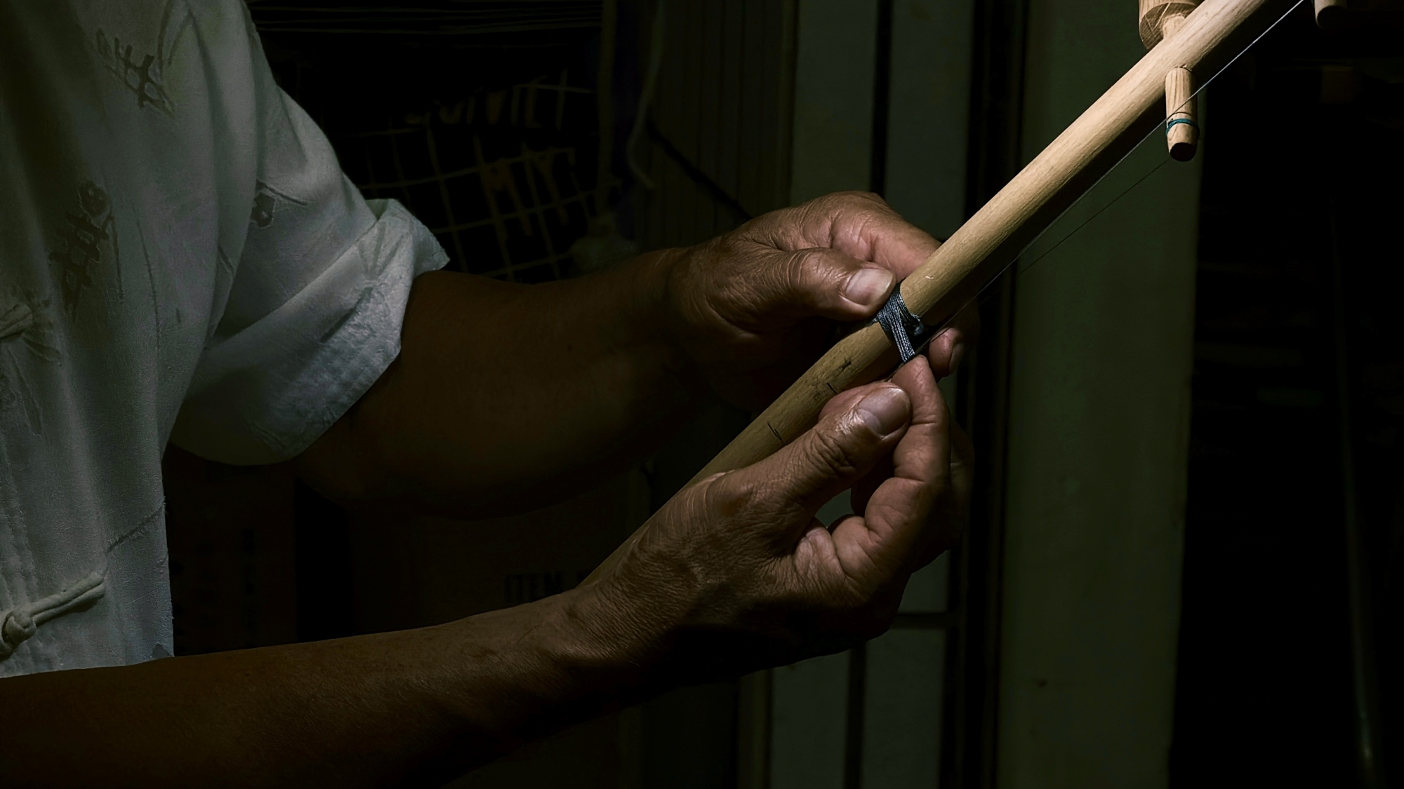 在家廟親手打造自己的二胡