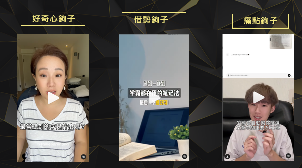 - 設計「開場鉤子」(好奇心 / 痛點 / 借勢)提升觀看率