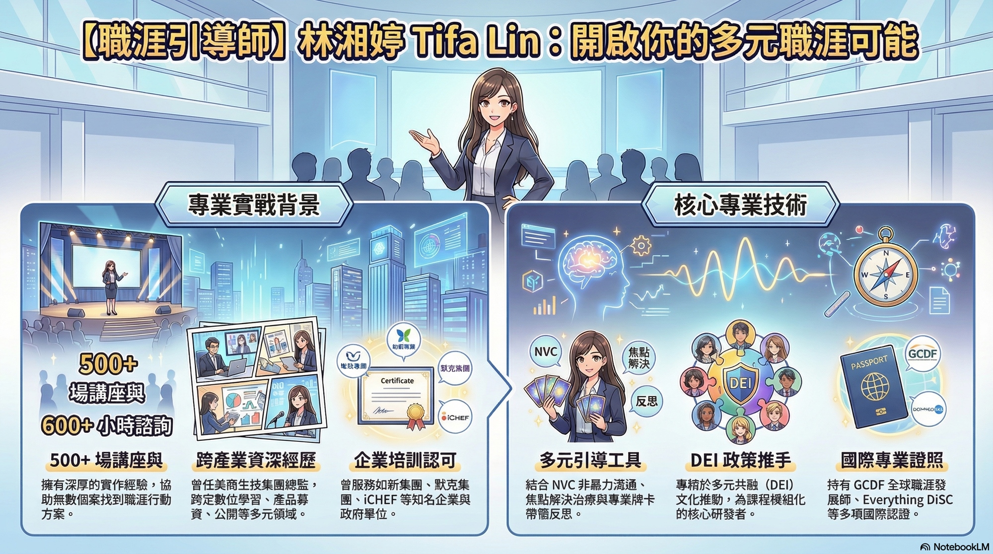 - 長期關注人才發展與產業動態,推動多元共融政策與文化,DEI-I model® 課程模組化幕後推手。
