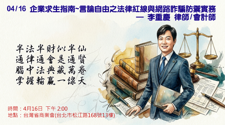 在數位資訊爆炸的時代,網路言論已成為現代溝通的核心,然而便利的傳播媒介也帶來了潛在的法律風險 。本場講座由李重慶律師主講,旨在協助企業與個人在享受言論自由的同時,精確掌握法律紅線 。憲法雖保障言論自由以促進民主發展,但為維護個人名譽及隱私,法律對此仍有適當限制 。