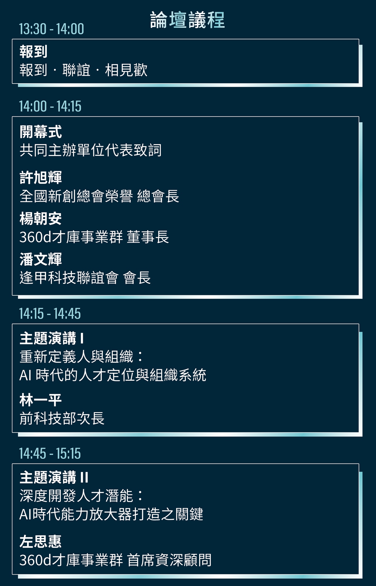 在 AI 日新月異演化的當下,率先掌握人才戰略方法論與組織優勢發展論的企業,可以不變應萬變地在下一輪競爭中建立難以複製的企業競爭力。