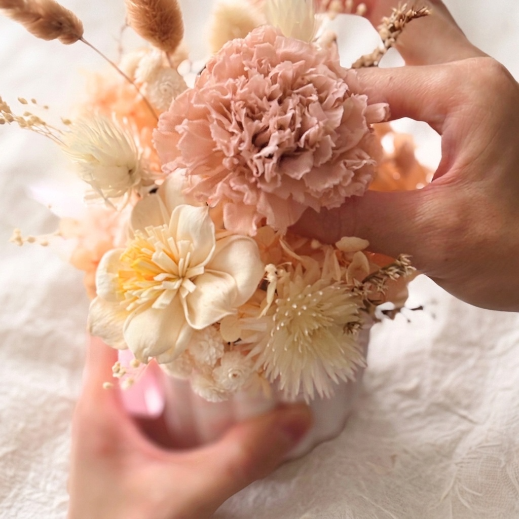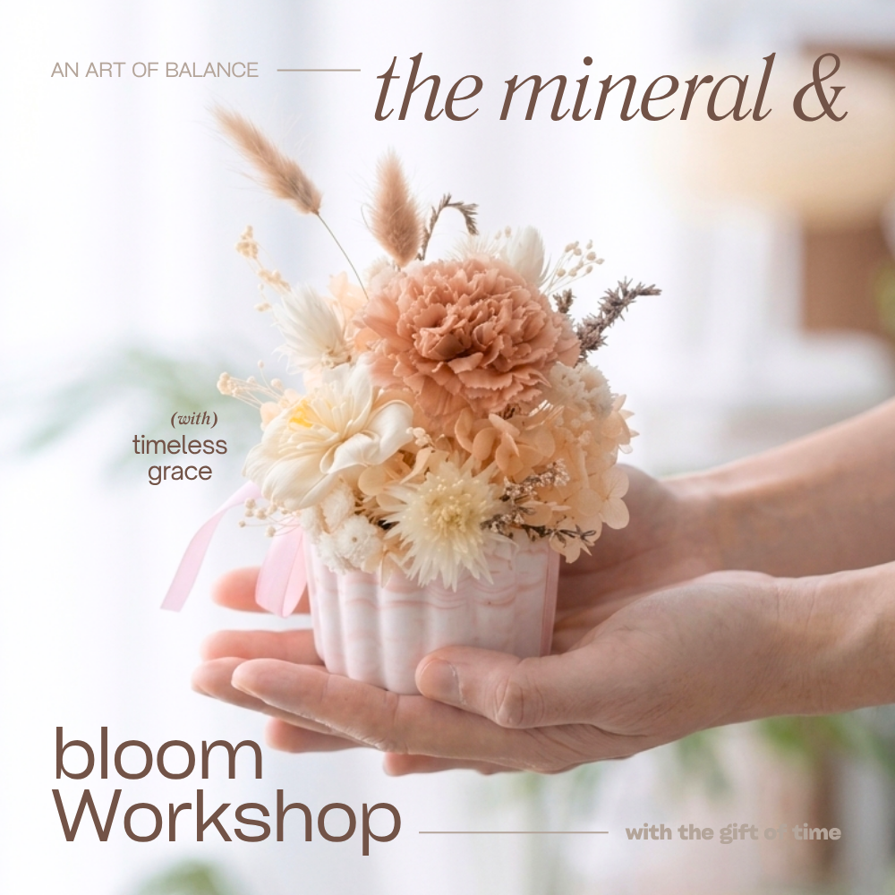 在這 3 小時的慢活時光裡,我們將溫潤礦石與永生花藝揉合於掌心