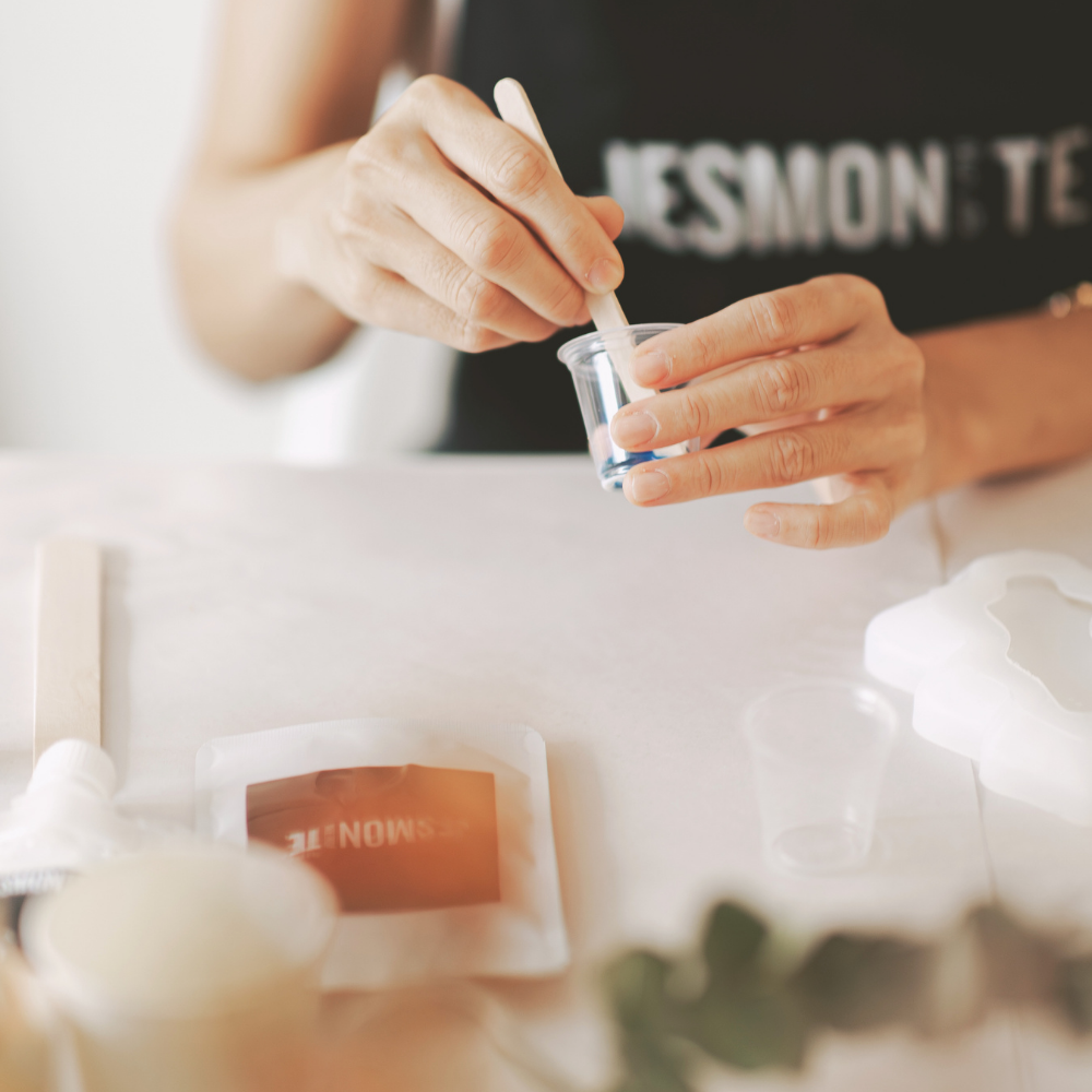 選用英國 Jesmonite 礦物材料,學員可依直覺調配專屬色調與紋理