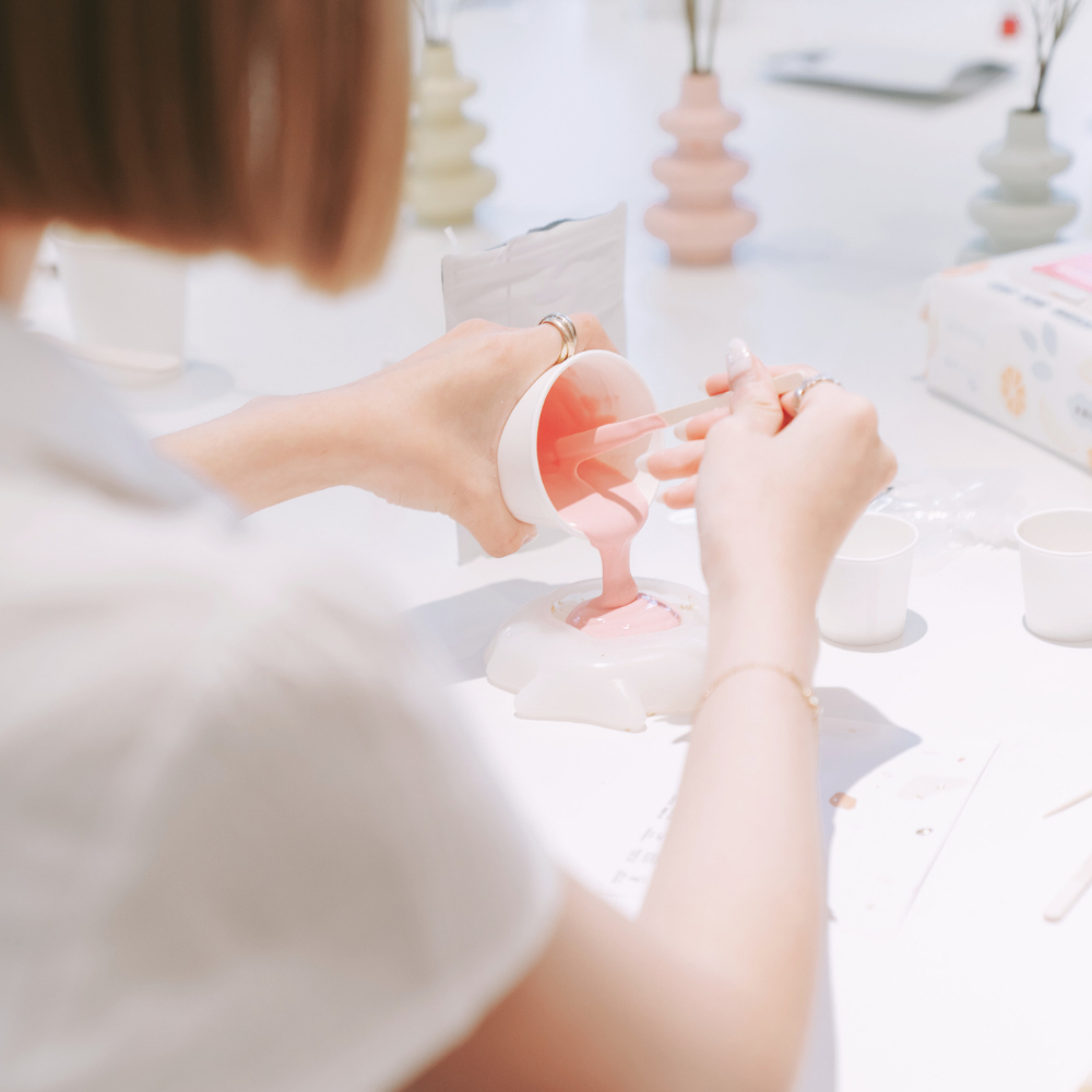 你會在這裡調色、澆鑄、等待脫模、插花、拍照。