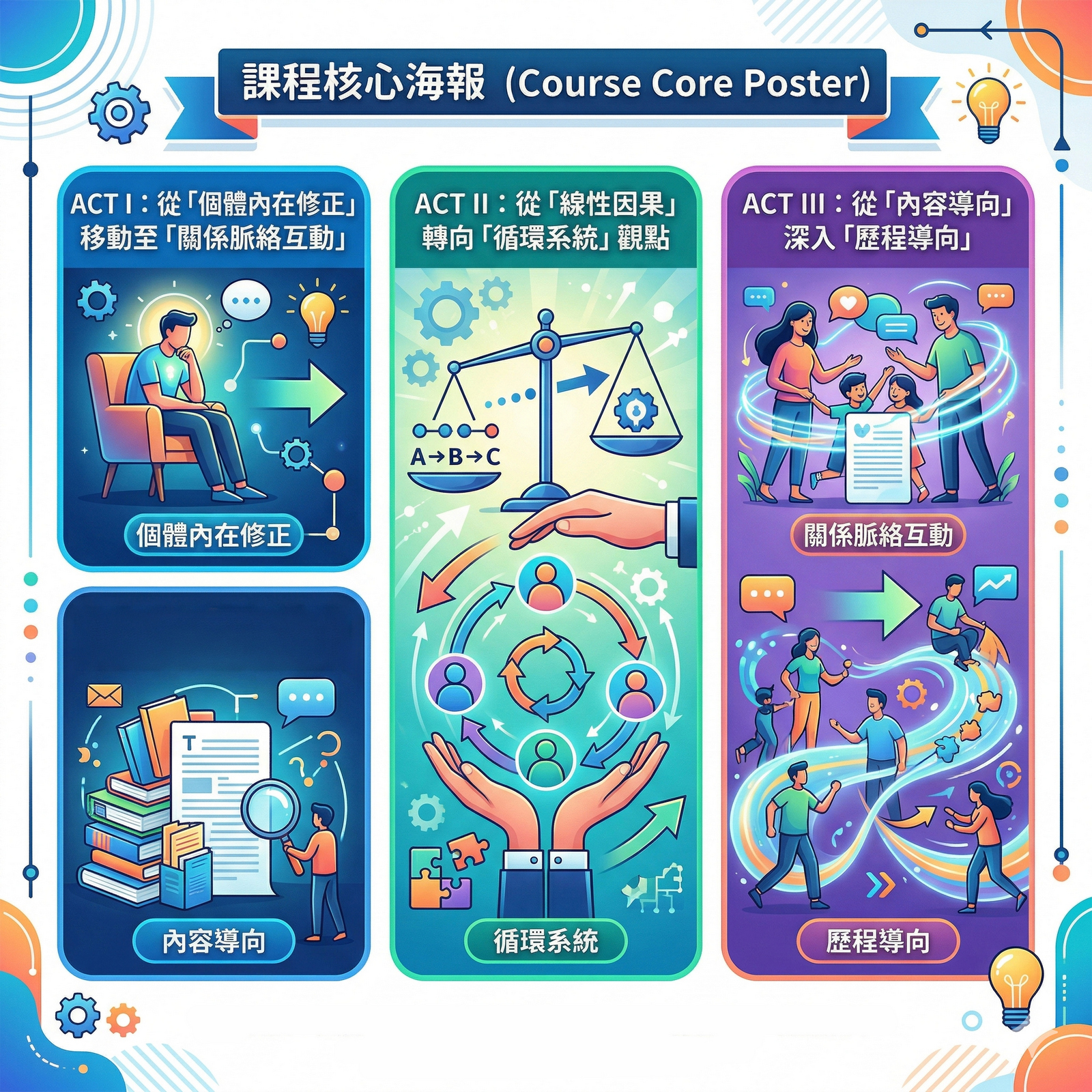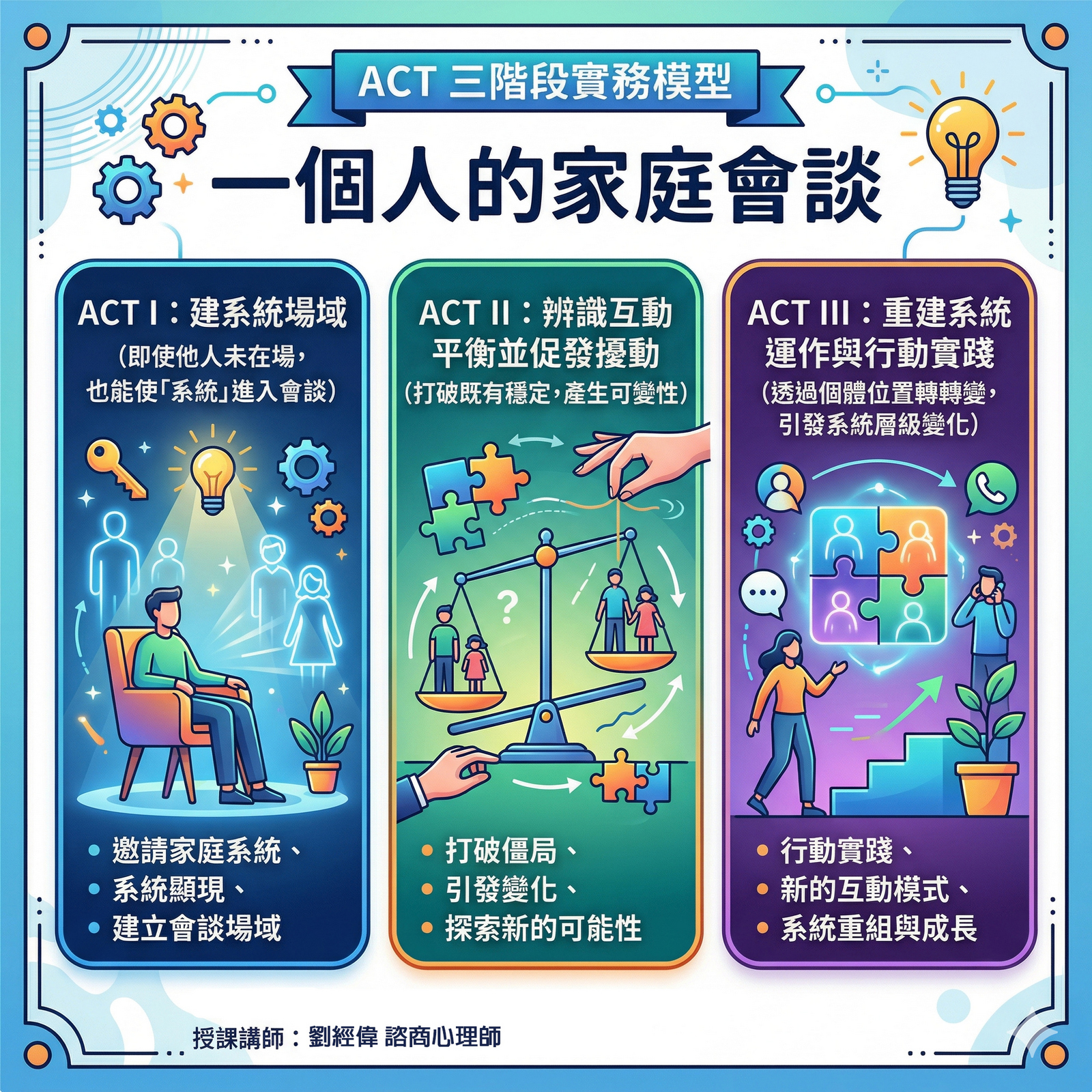 本課程將以三階段實務架構(ACT I–III)