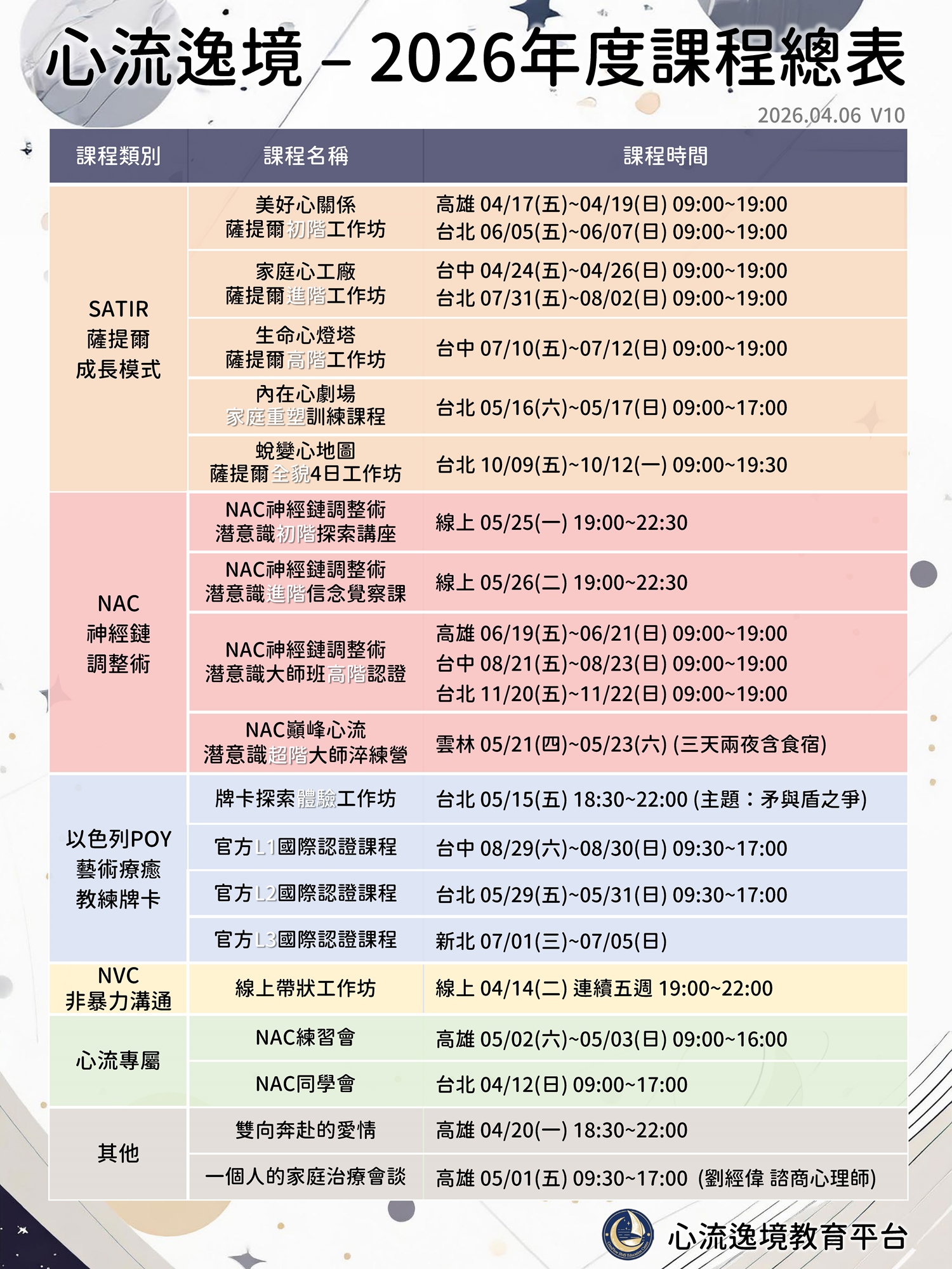❤心流逸境教育平台-近期課程表❤