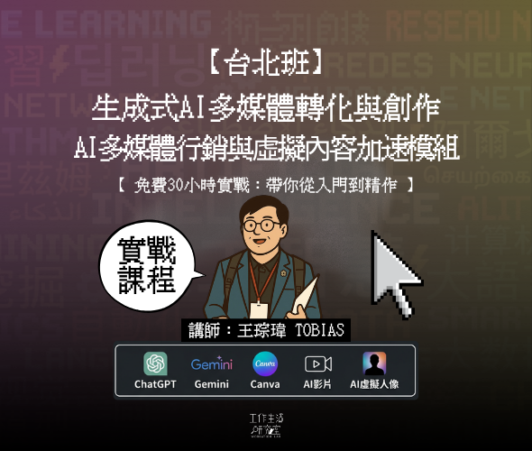 - 重要提醒:本課程受政府補助,需配合簽到退及相關調查。若報名成功後無故缺席達 2 次,將影響未來參與其他政府計畫補助課程的權益。