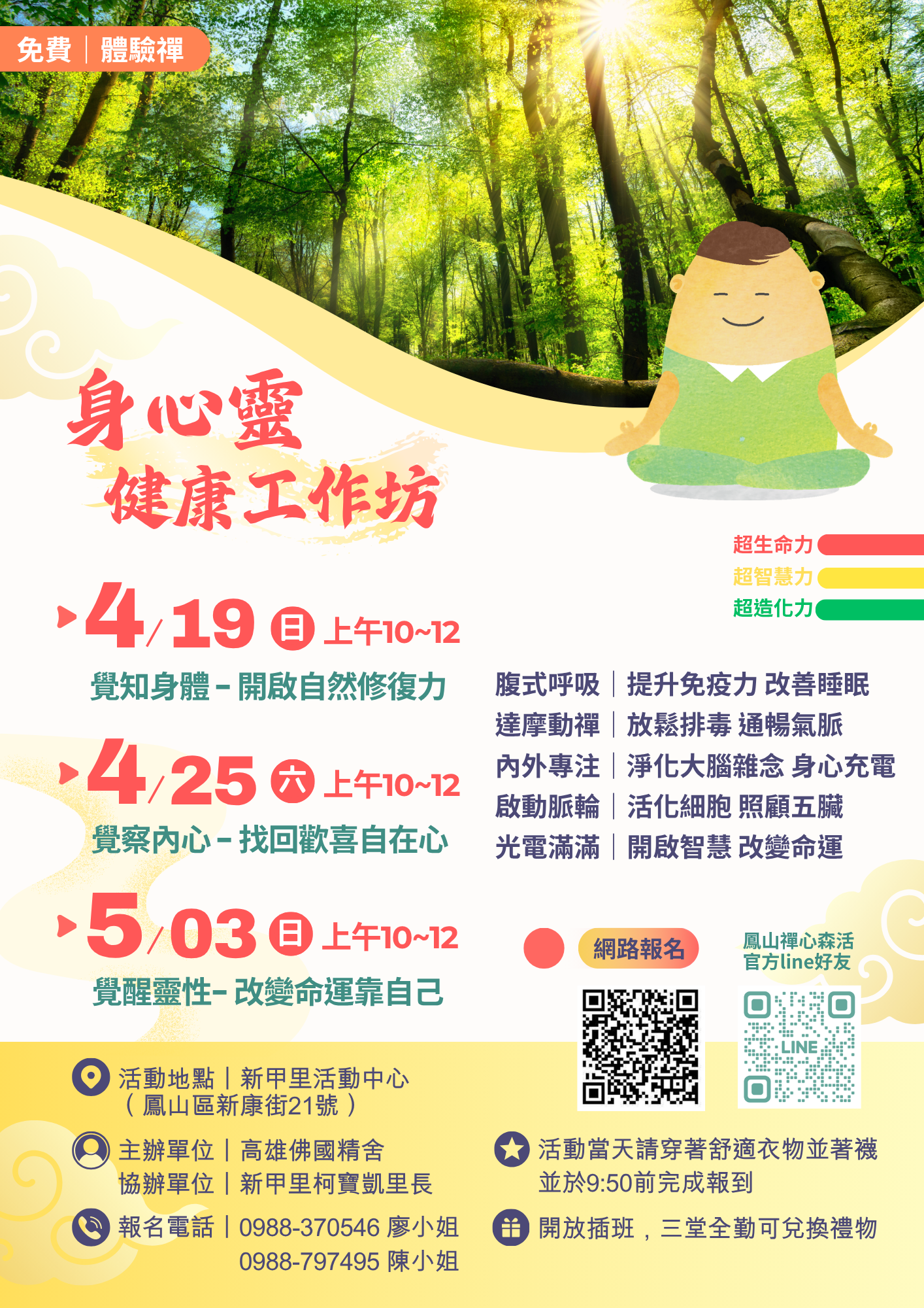 🌟講座內容:腹式呼吸、達摩動禪、基礎禪定、啟動脈輪