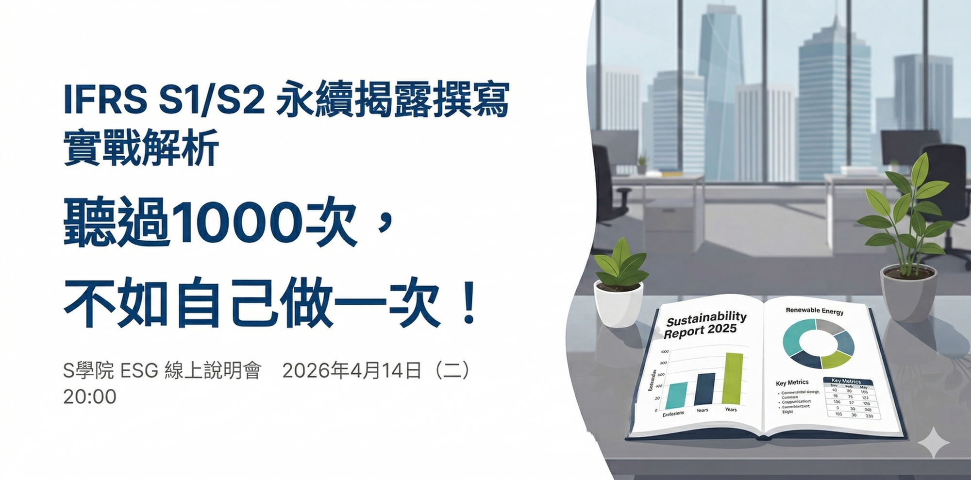 4月14日(二)20:00 S學院ESG線上說明會分享主題 : 台積電 IFRS 永續揭露準則 S1/S2 與現行永續資訊之差異分析報告解析
