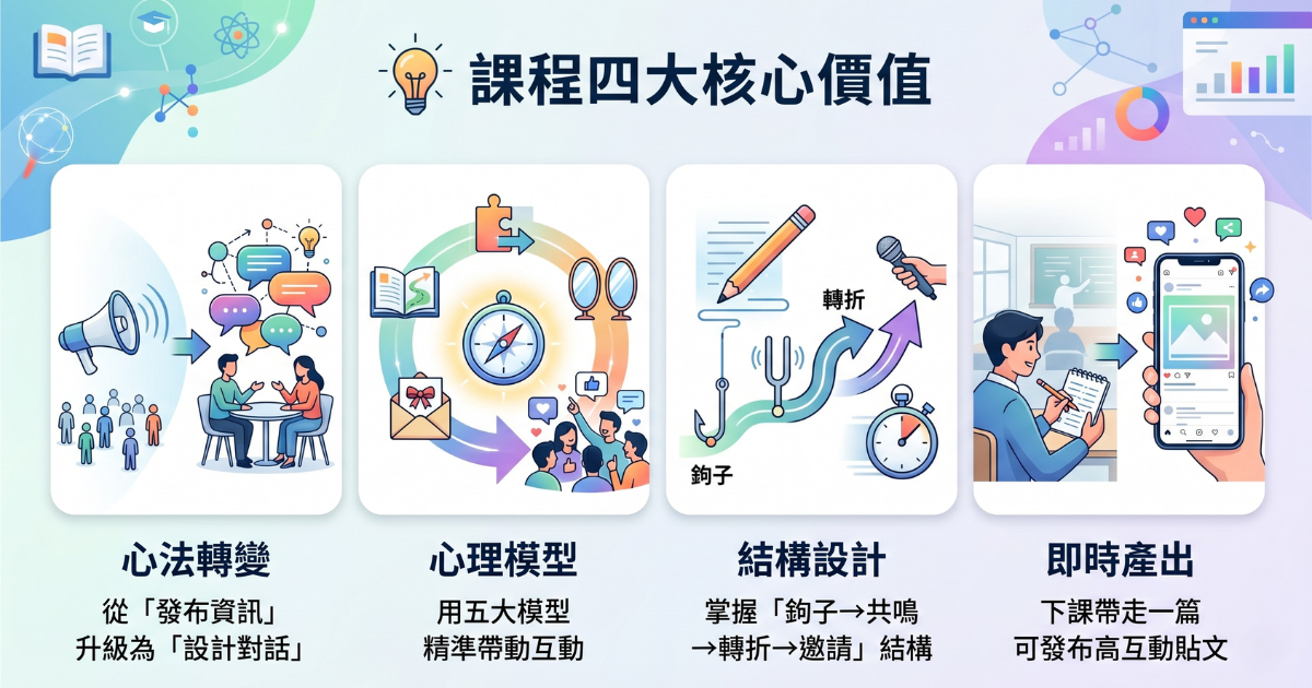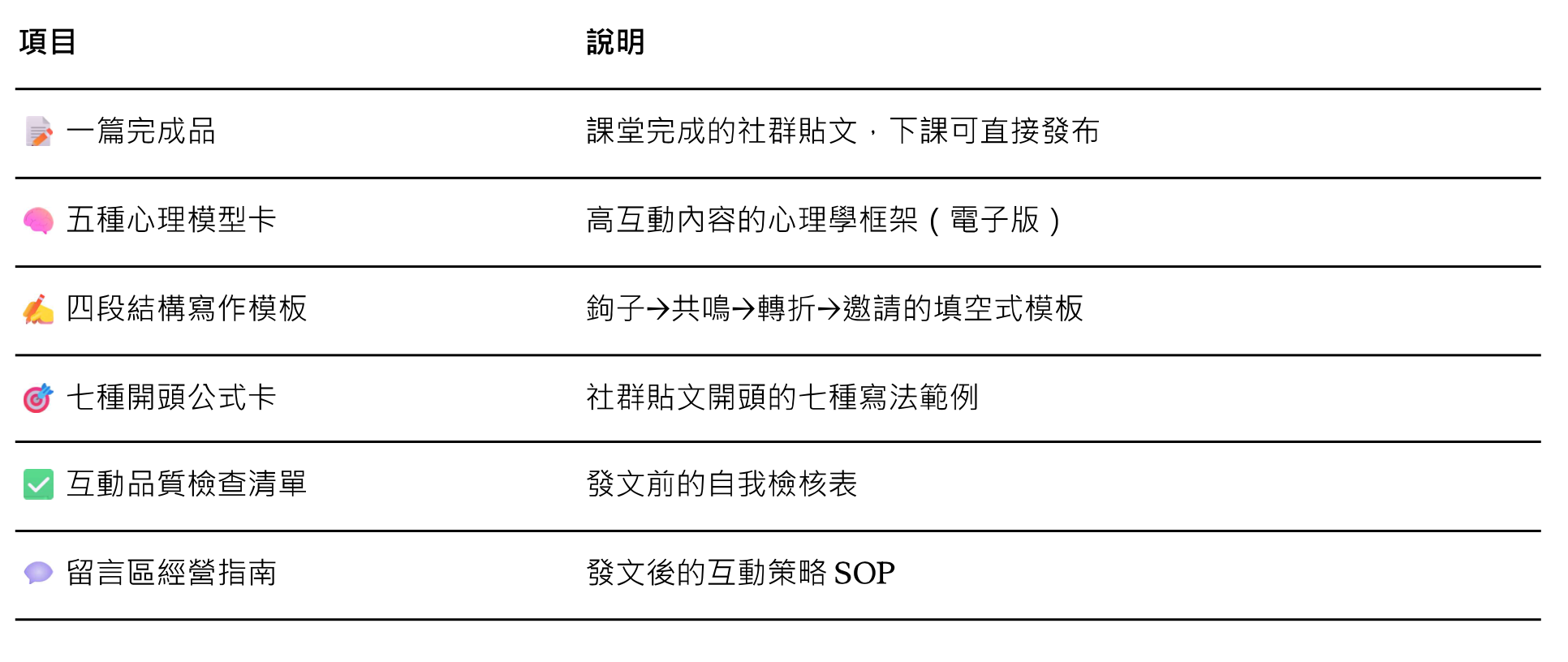 這堂課不只教你「怎麼寫貼文」,也教你「怎麼讓人看完忍不住想回應」
