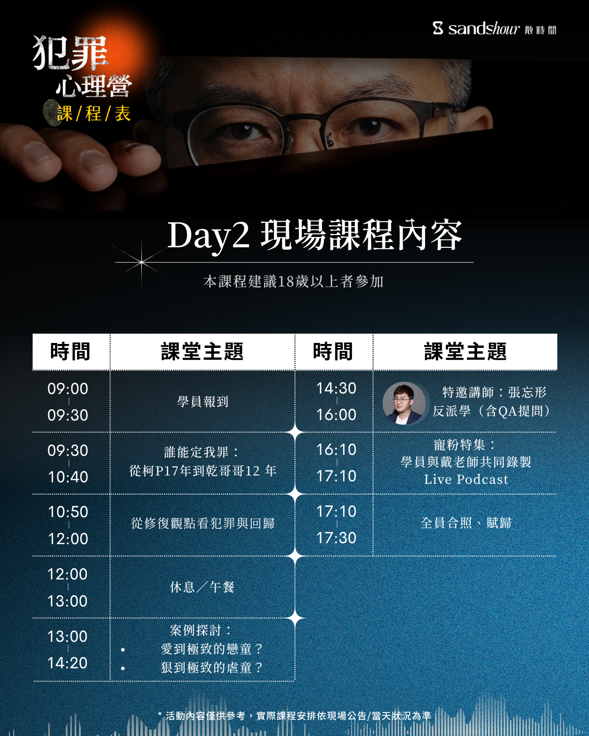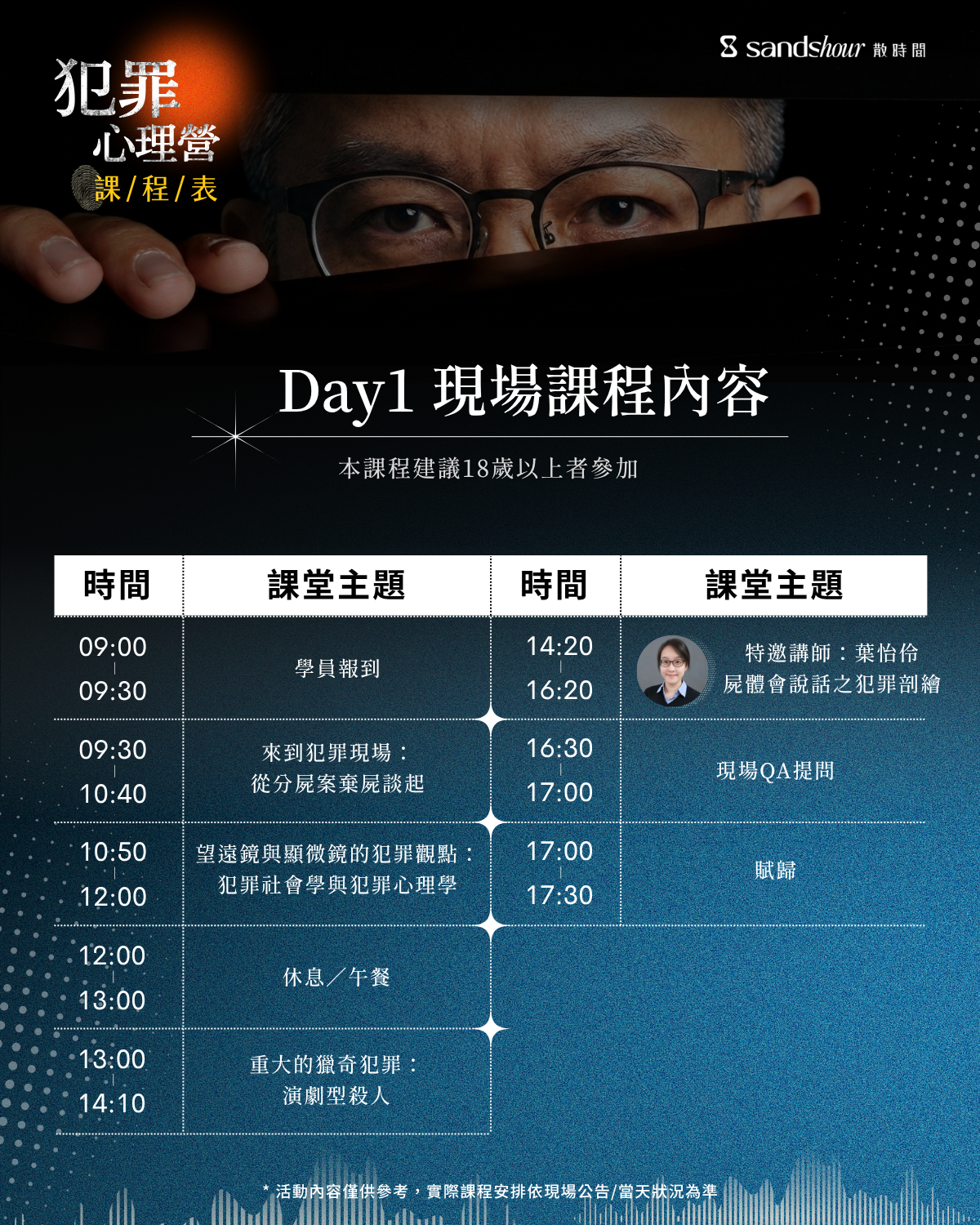 兩天的課程,將從真實案例出發,結合犯罪心理學理論與行為分析,