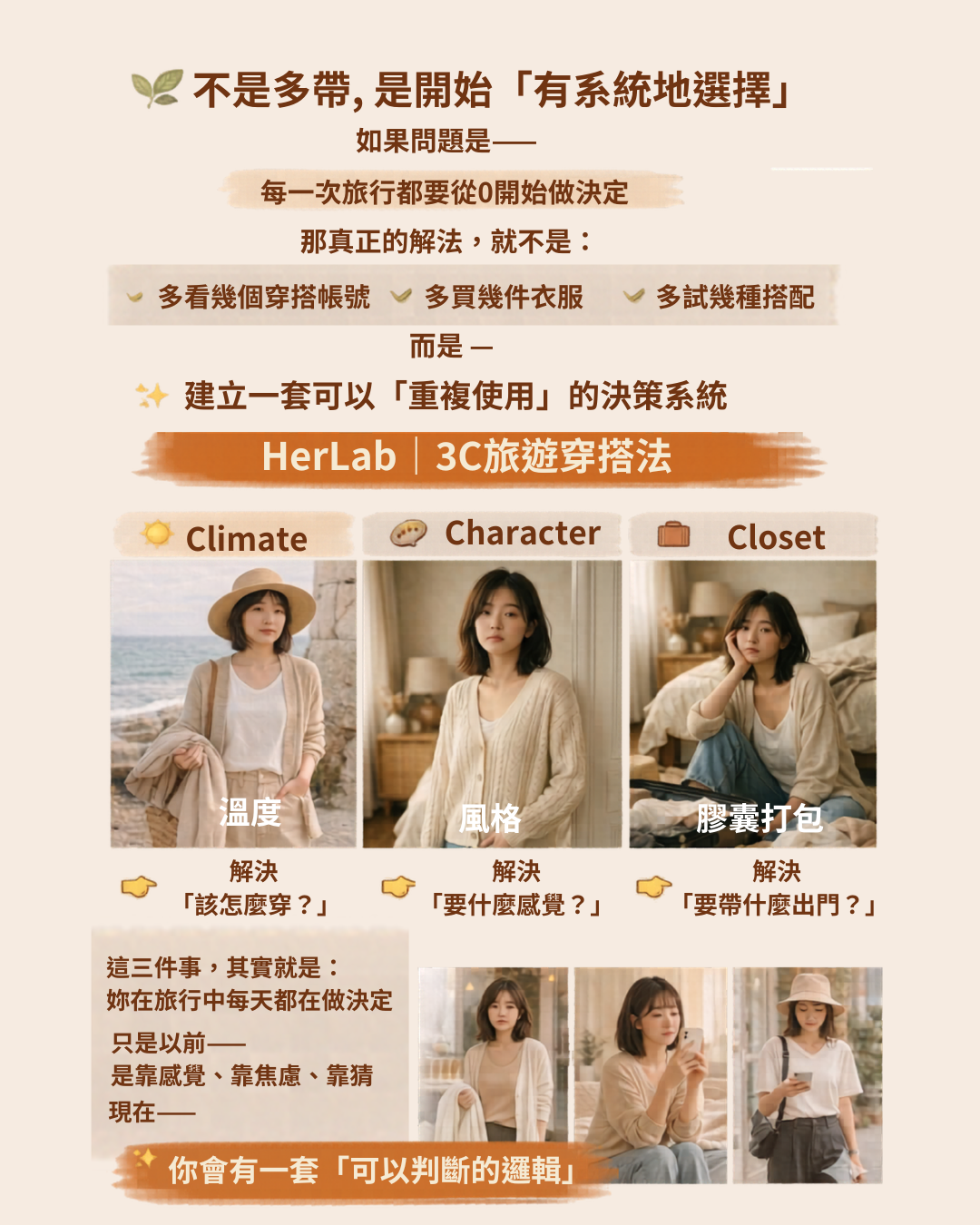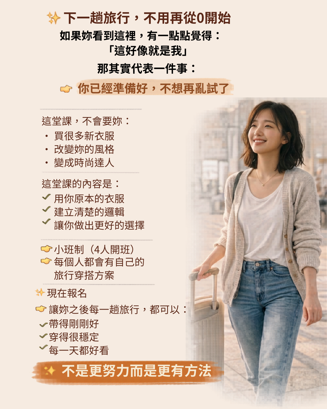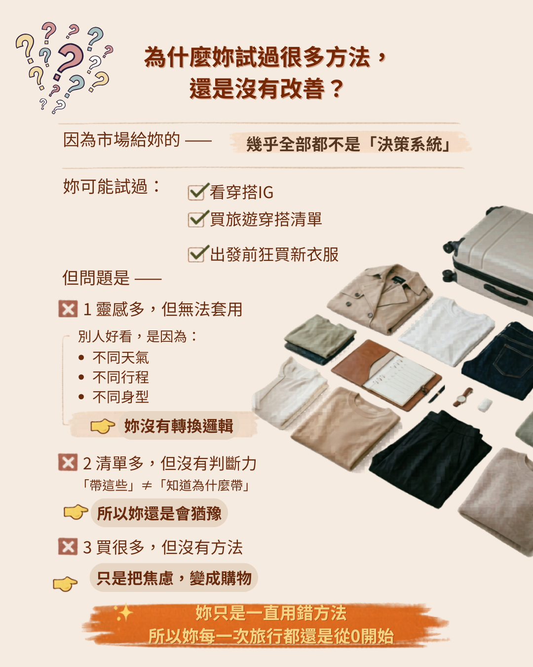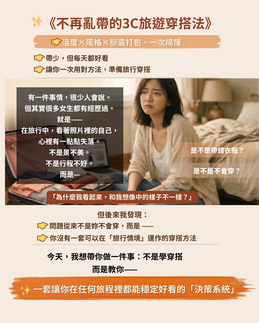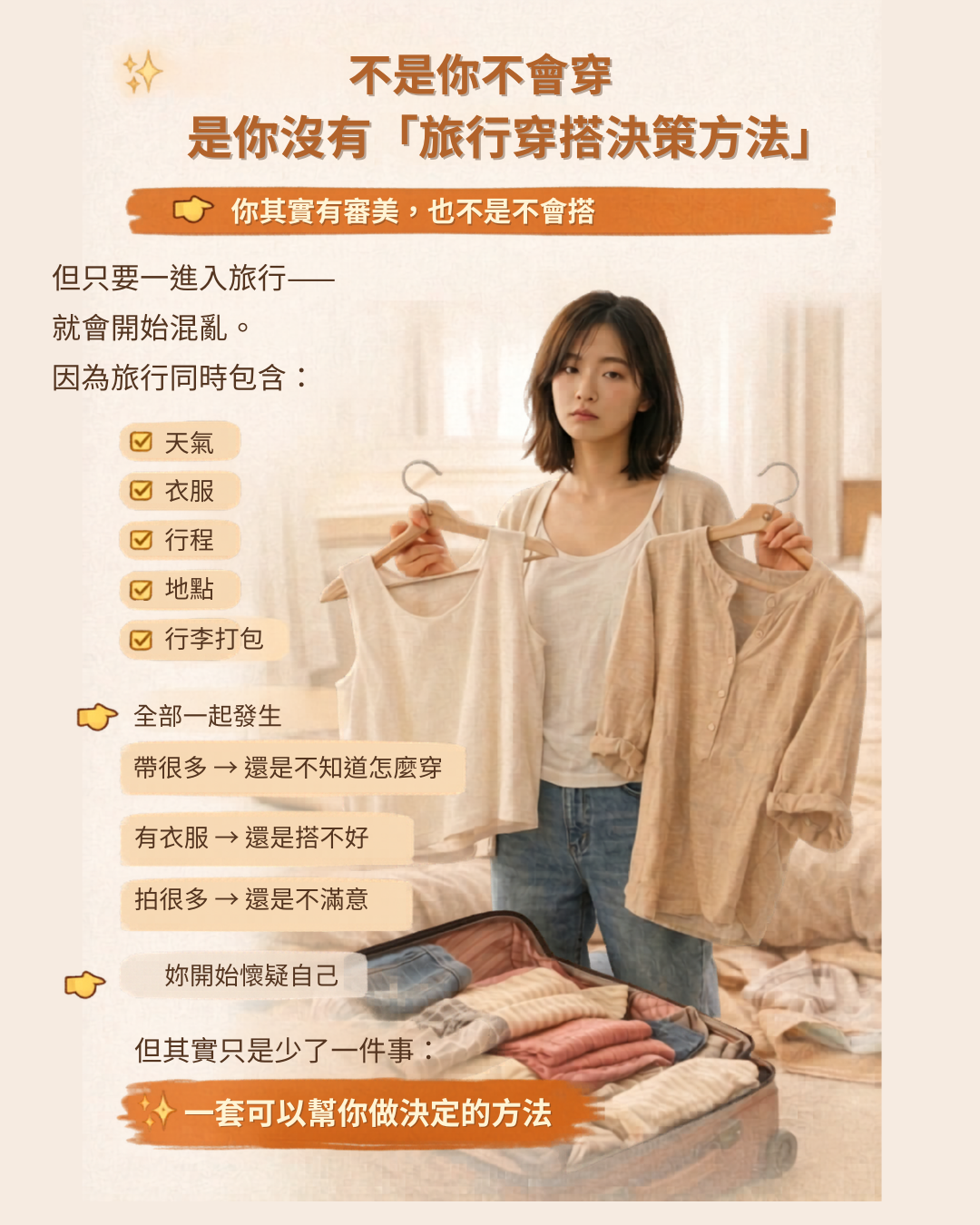 👉 你沒有一套可以在「旅行情境」運作的穿搭方法