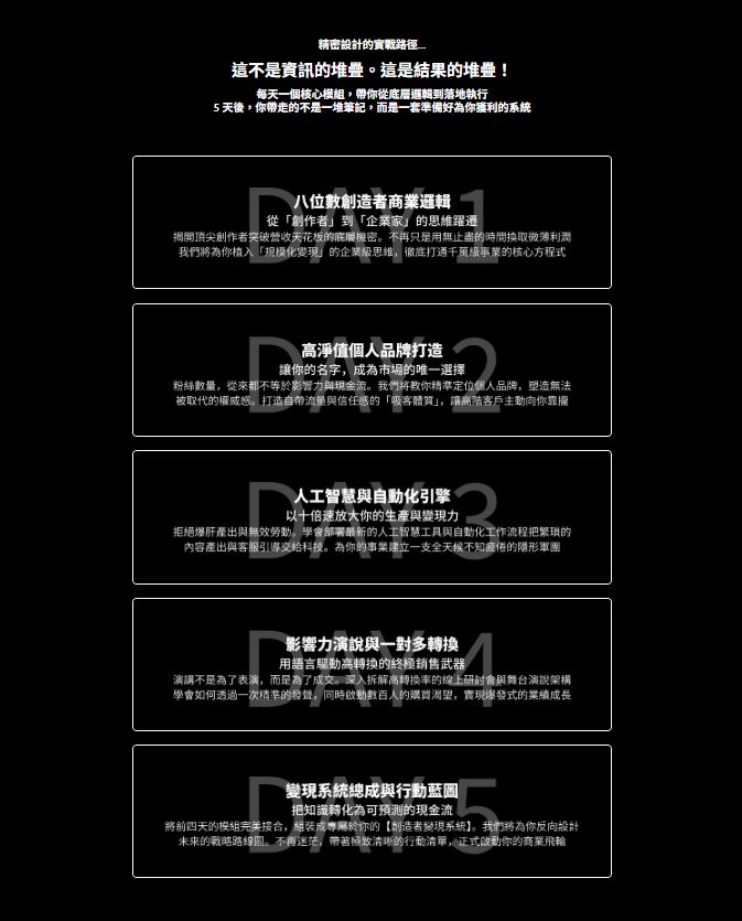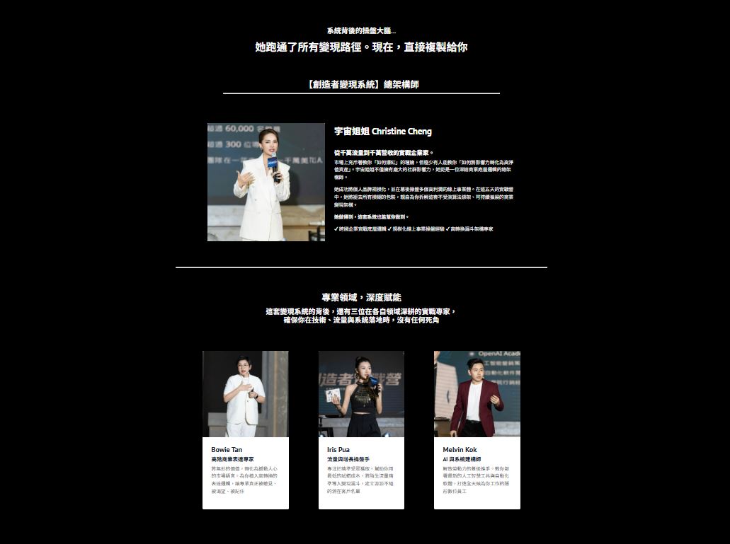 【活動關鍵詞】:影響力變現、個人品牌顧問、自動化行銷漏斗、AI 商業應用、高淨值客戶定位、創造者經濟、創業系統化、線上課程規劃。