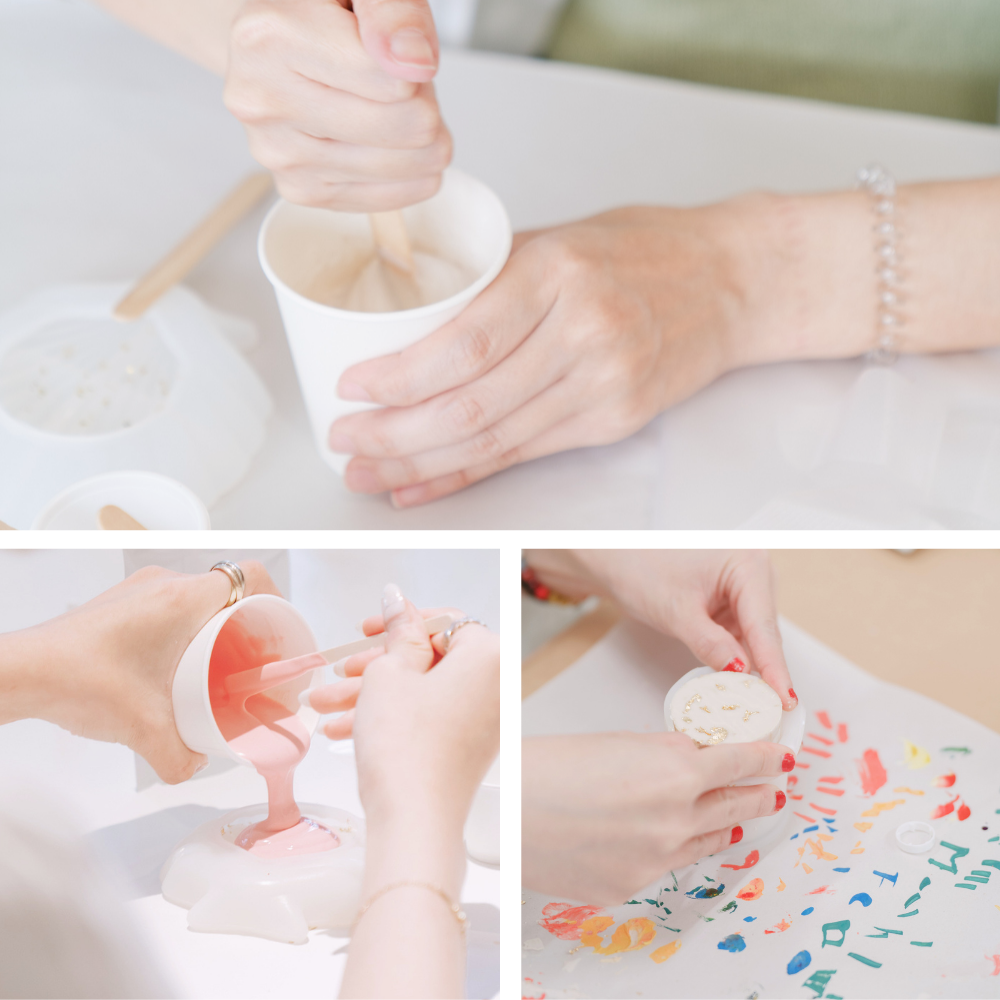你會在這裡調色、澆鑄、等待脫模、插花、拍照。