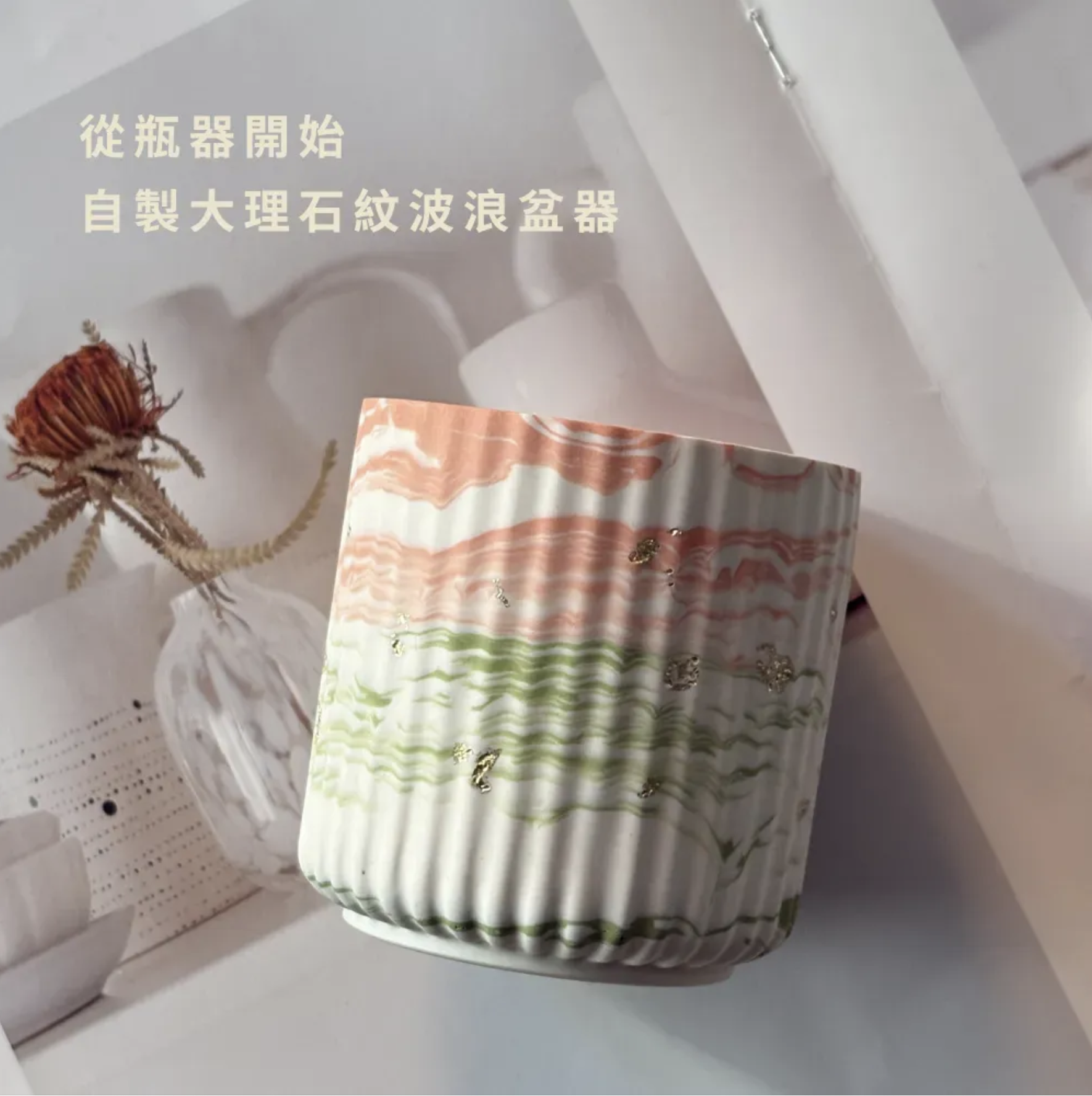 ✦ 零基礎也能完成 ✦ 一堂課完成兩件作品 ✦ 爵石盆器可作其他用途使用