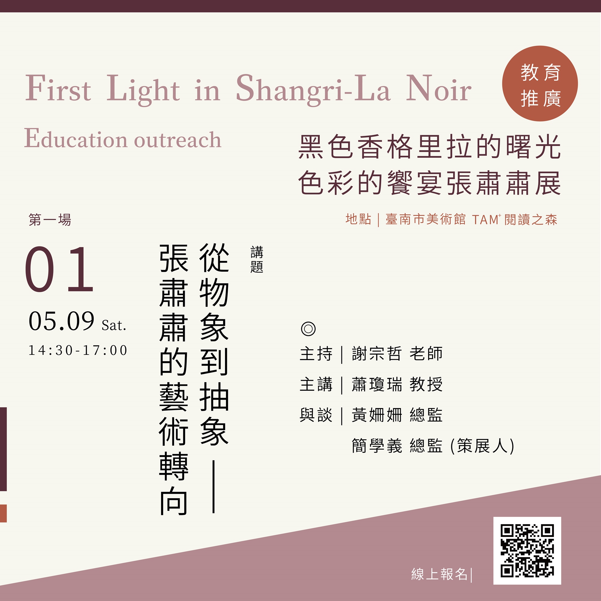 簡學義 總監 (策展人) - 簡介:本場講座聚焦張肅肅由寫實至抽象的創作發展歷程,從其早期素描出發,梳理其如何在現代藝術思潮影響下,逐步轉化為以色彩為核心的表現語言。透過藝術史觀點的分析與對談,引導觀眾理解其畫面中所呈現之形式變化與內在精神,並進一步認識其創作在臺南現代藝術脈絡中的位置。