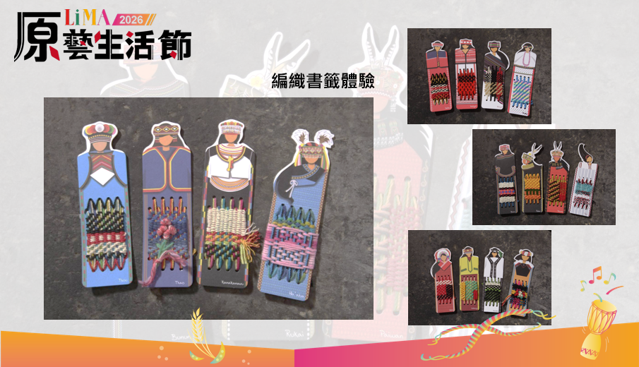 穿梭時光的體驗:臺灣原住民目前共有16個族群,我們將以一張小小的編織書卡為載體,全系列呈現十六族群的特色,透過多樣色彩與圖紋,交織出各族的文化意象,在創作中看見文化的延續與轉化。