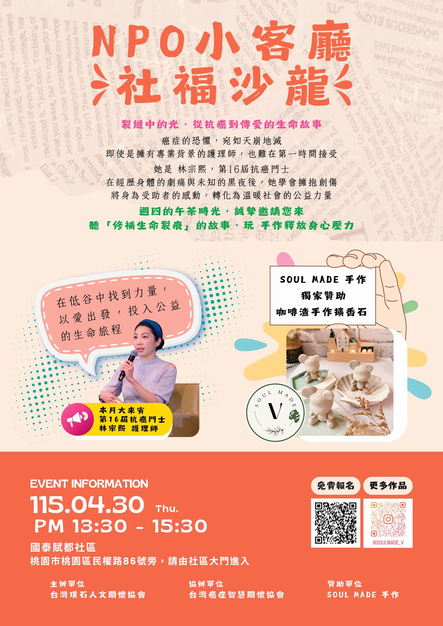 誠摯邀請勇敢的病友、辛勞的照顧者,以及對公益充滿熱忱的你,走進這場溫馨沙龍。