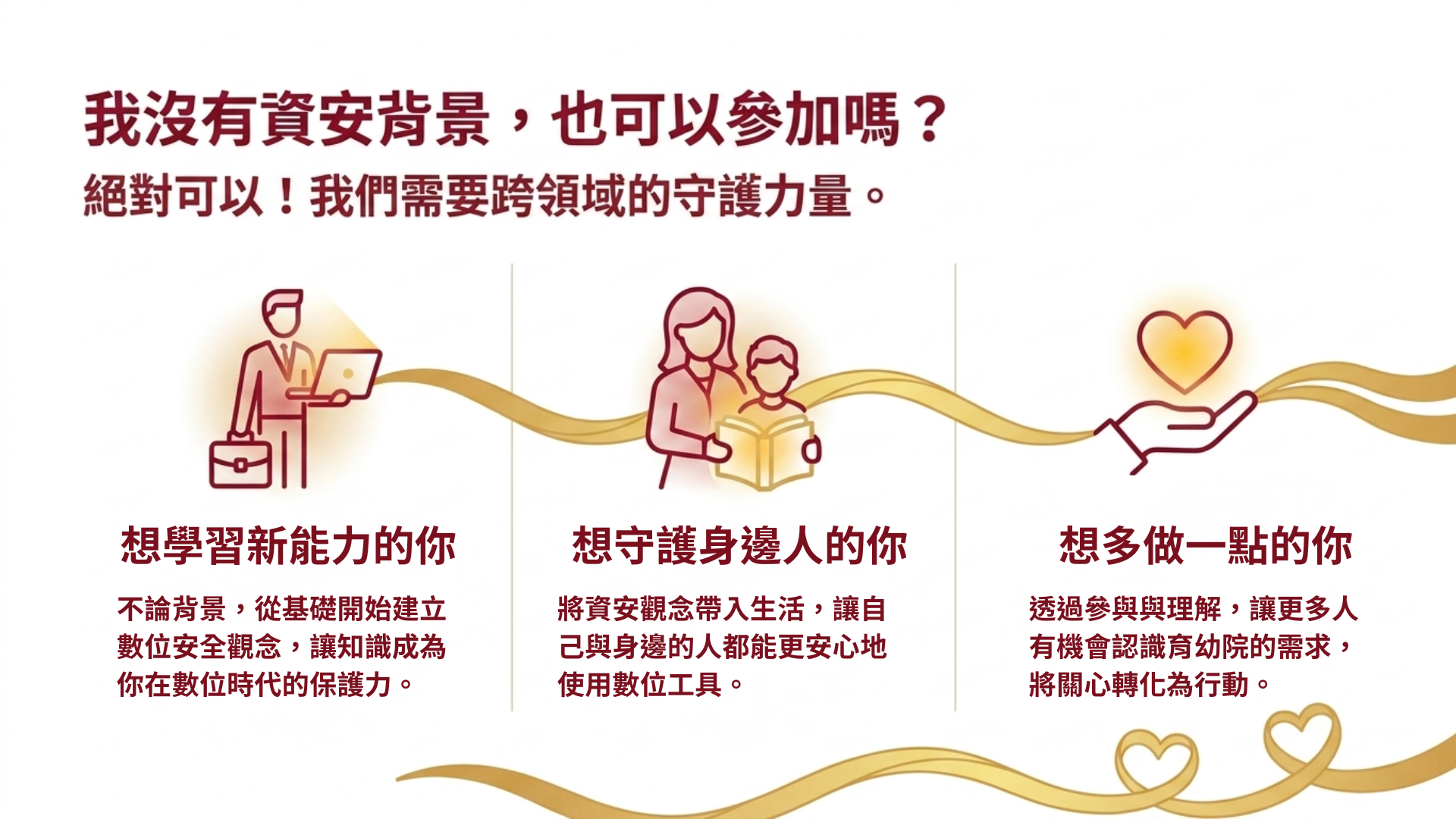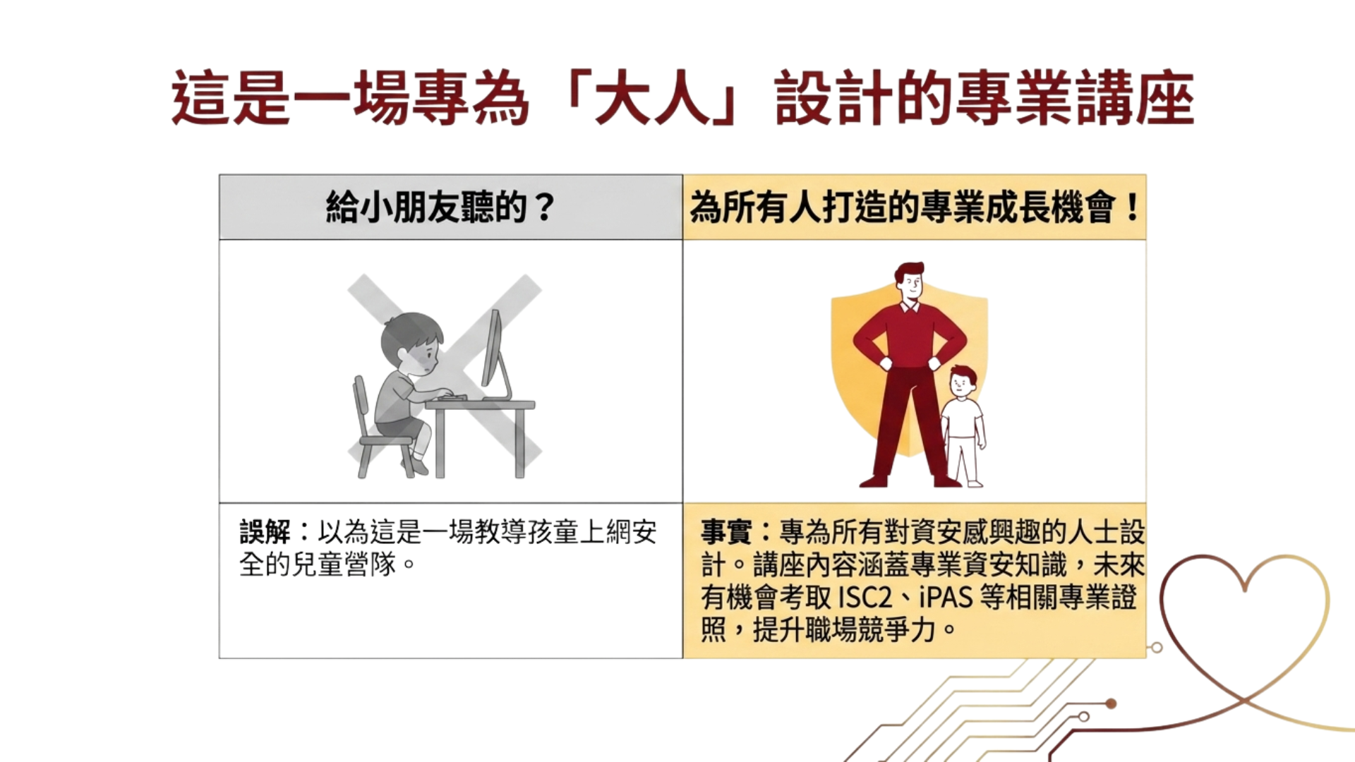 - 學會在日常生活與工作中可實際應用的資安思維