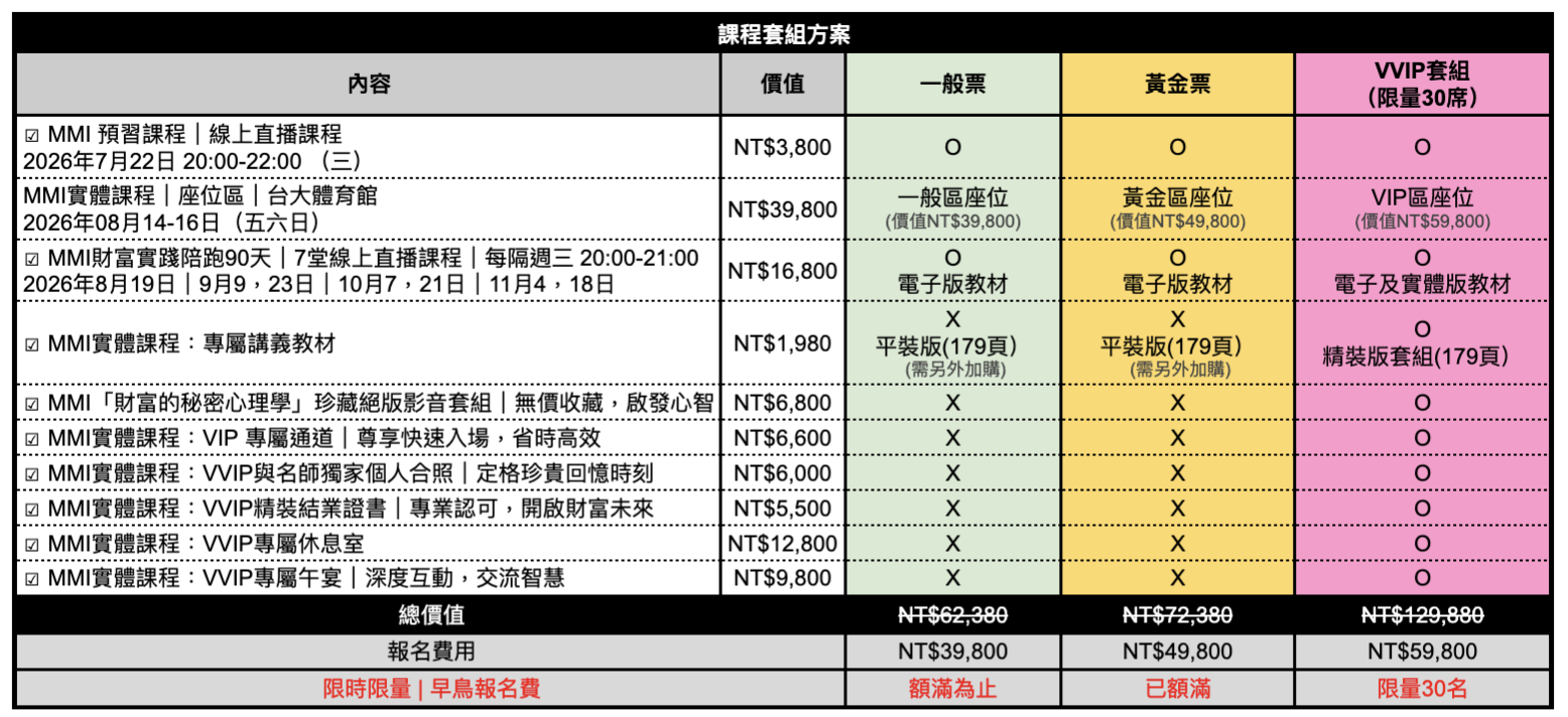 課程名稱:「MMI有錢人想的和你不一樣」三天密集改造課程 - 台灣站
