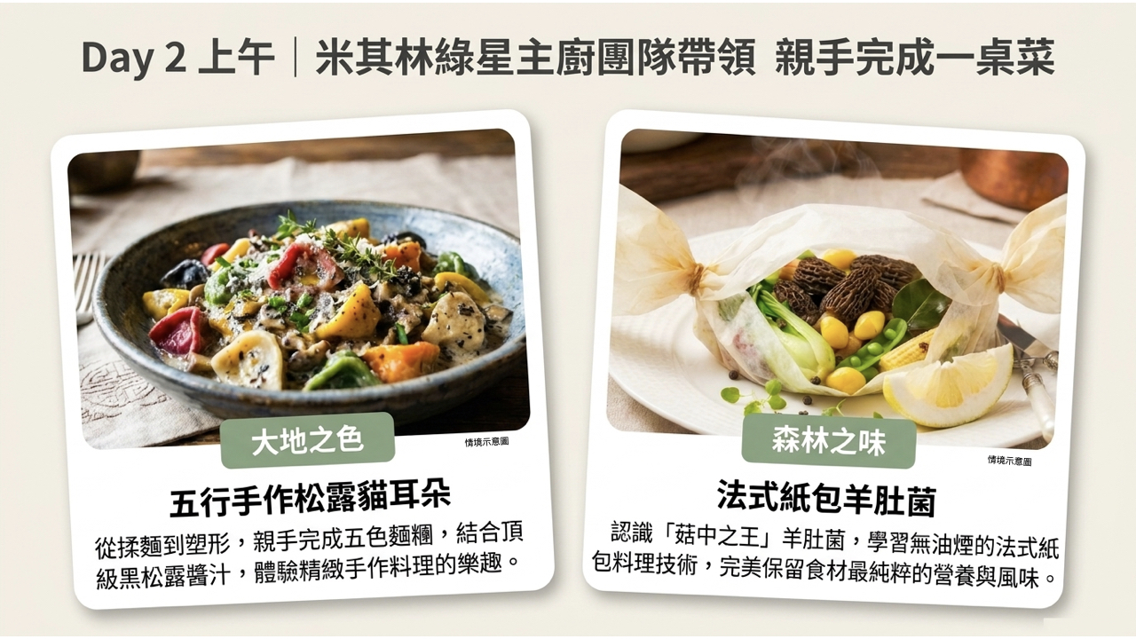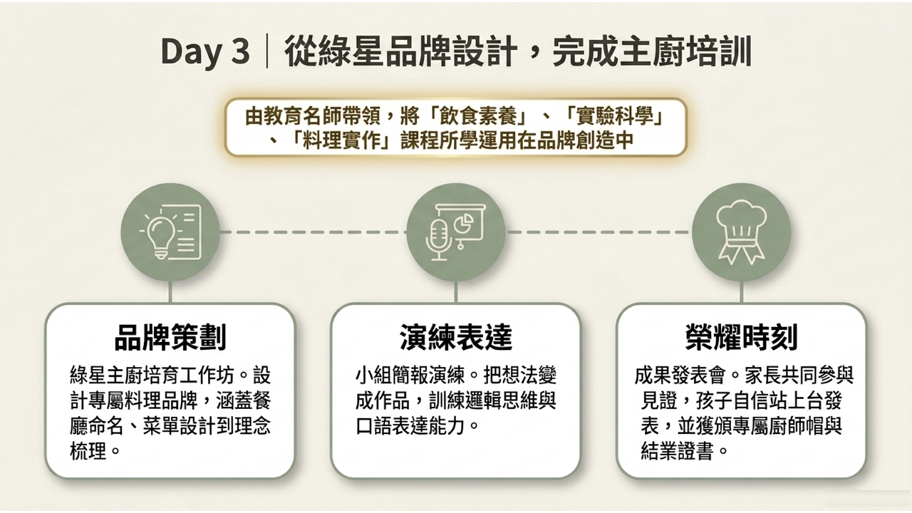 ✔ 第3天下午課程「綠星主廚成果發表」邀請家長共同參與。