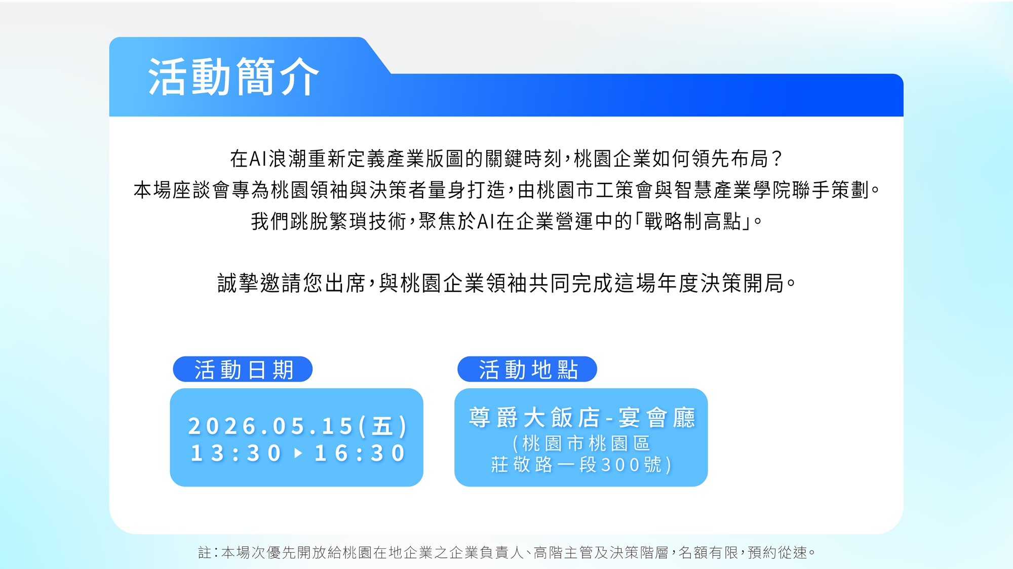 主辦單位:桃園市工商發展投資策進會、桃園市智慧產業學院