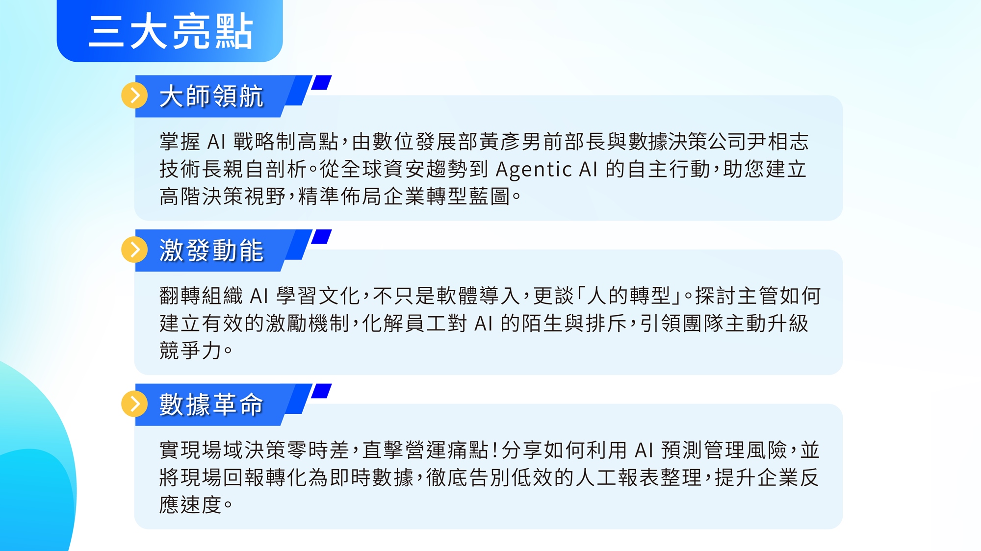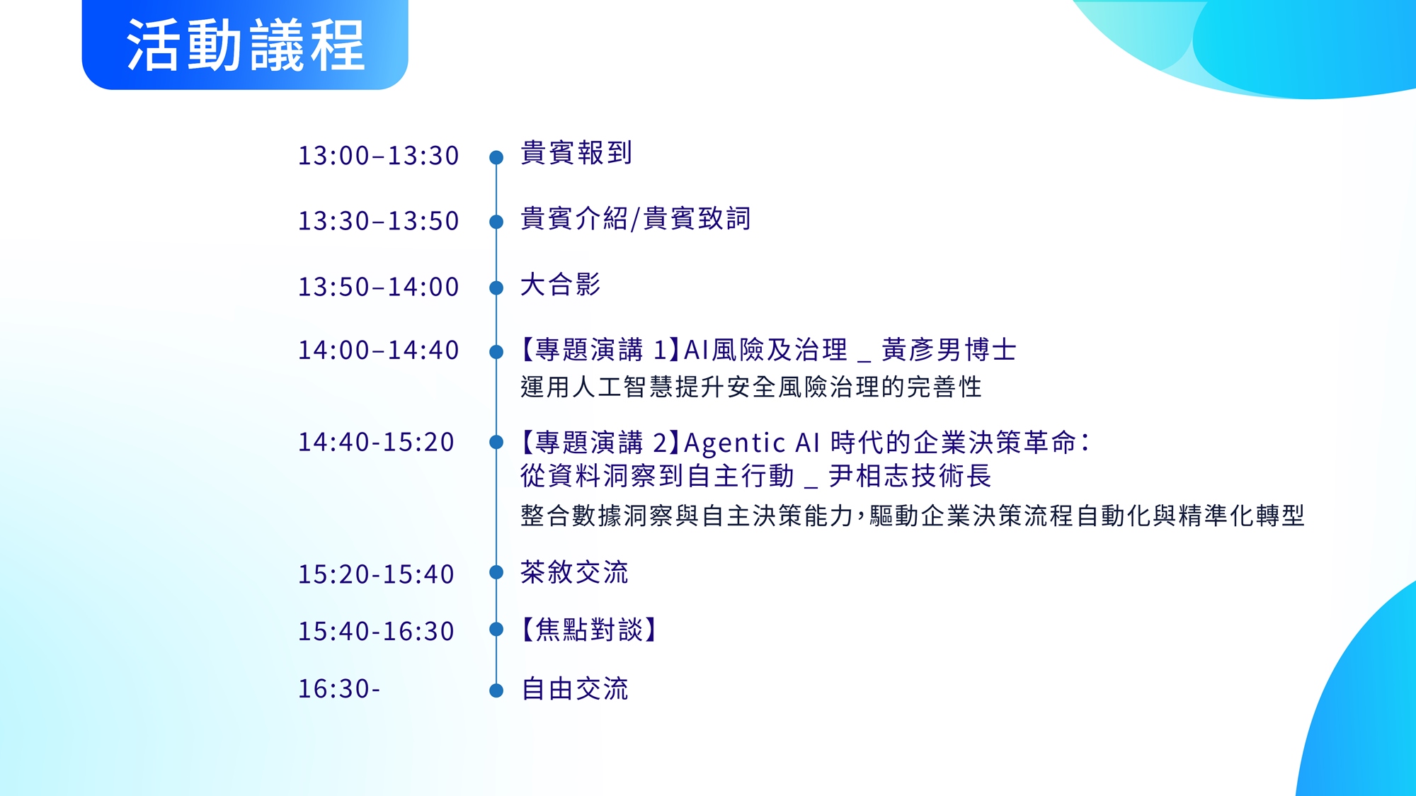 ・活動主題:AI時代的決策革命,從數據洞察到企業競爭優勢