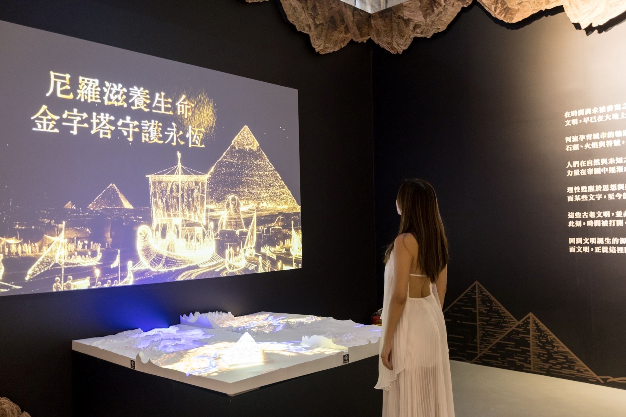 展區亮點:立體金字塔投影、巨型人面獅身像、陵寢造景