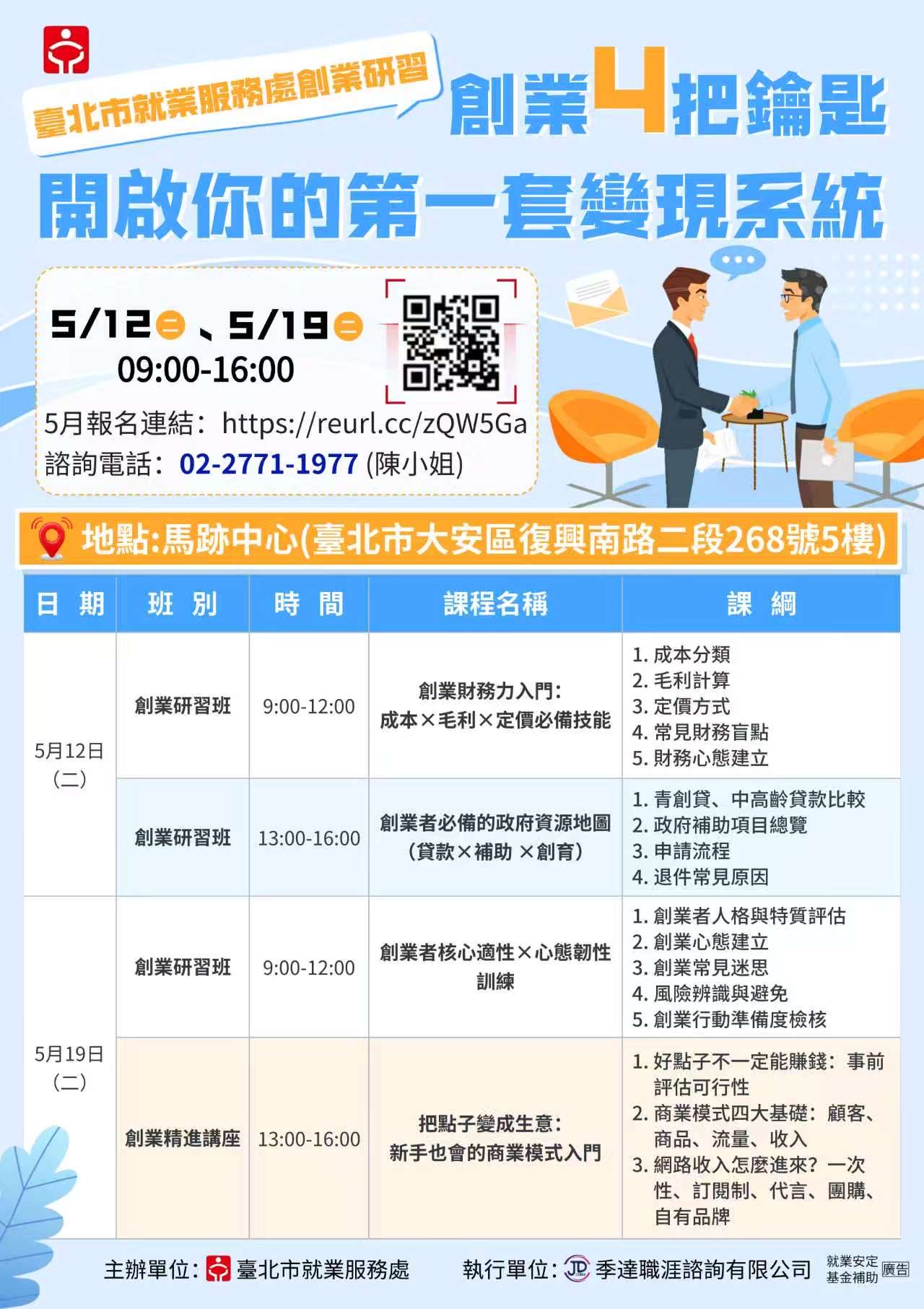 5月19日(二) / 09:00-12:00 / 創業研習班