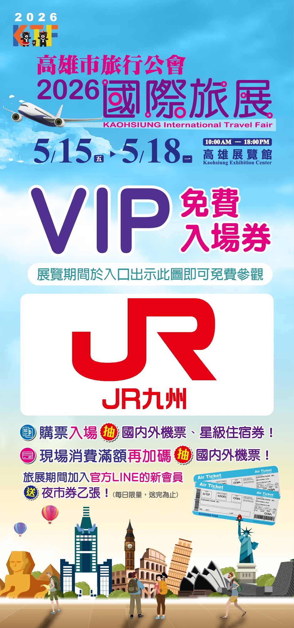 2026高雄市旅行公會國際旅展訂於2026年5月15日(五)~5月18日(一)高雄展覽館舉辦。
