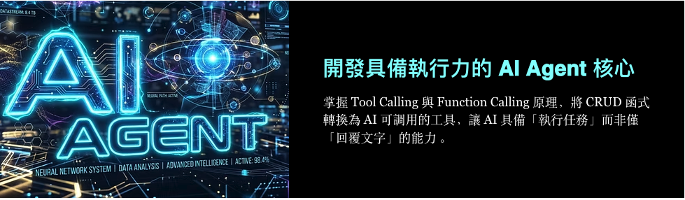 將 CRUD 函式轉換為 AI 可呼叫的工具: 將你之前寫好的新增、刪除、修改、查詢功能封裝成工具(Tools),讓 AI 根據對話內容主動去操作資料庫。