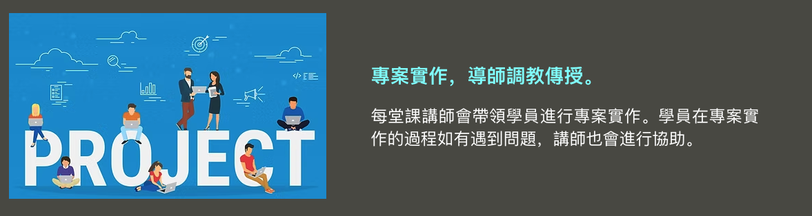 系統化教學打通任督二脈,獨家專案實作扎穩職場馬步,上完課程後你將學習👇