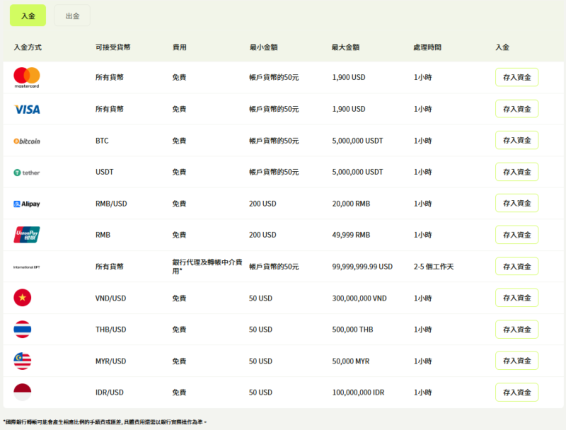為驗證網路上關於「無法出金」的客訴,親自進行了開戶與出入金實測。該平台支持信用卡、國際電匯以及加密貨幣(如 USDT)。實測透過加密貨幣通道申請出金,資金於 24 小時內順利抵達外部冷錢包,並未遭遇惡意卡金的狀況。經查核產業常態,多數海外券商凍結帳戶的案例,往往肇因於客戶違反了國際防洗錢(AML)規定,或是使用了違規的套利外掛程式(EA)而觸發風控。