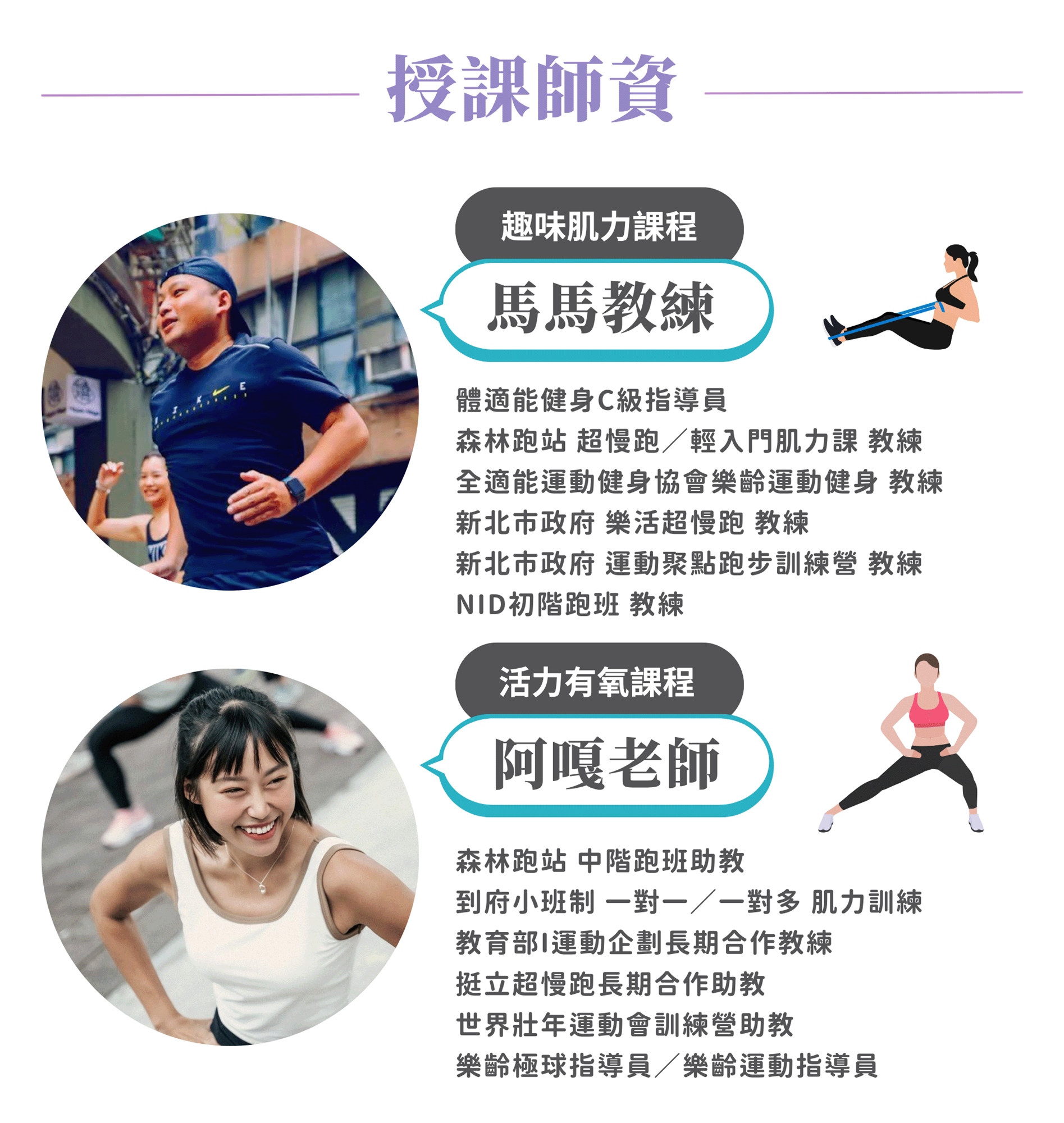 🔹時間:09:30-10:30趣味肌力、10:40-11:40活力有氧