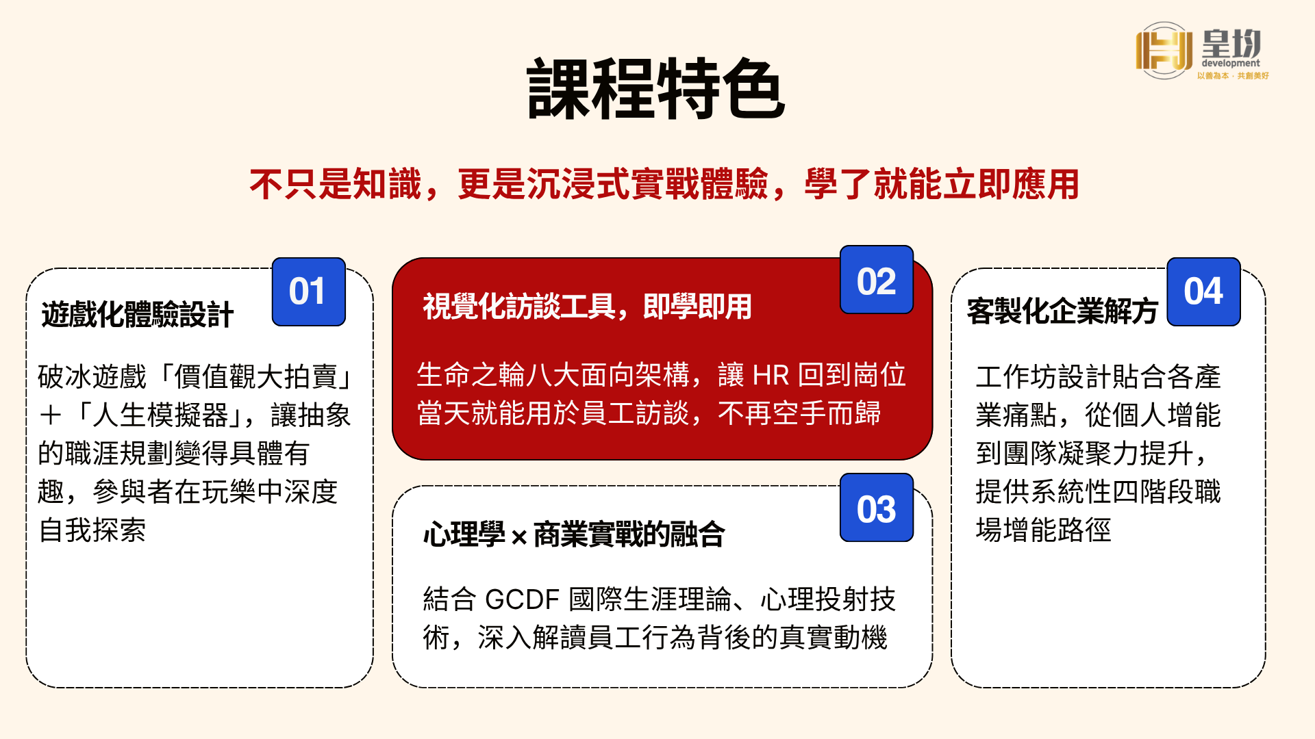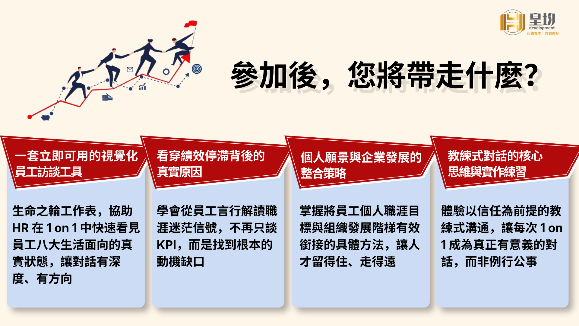 | 👥 HR 與人資主管 | 親身體驗有溫度的員工訪談引導工具,帶回即用 |