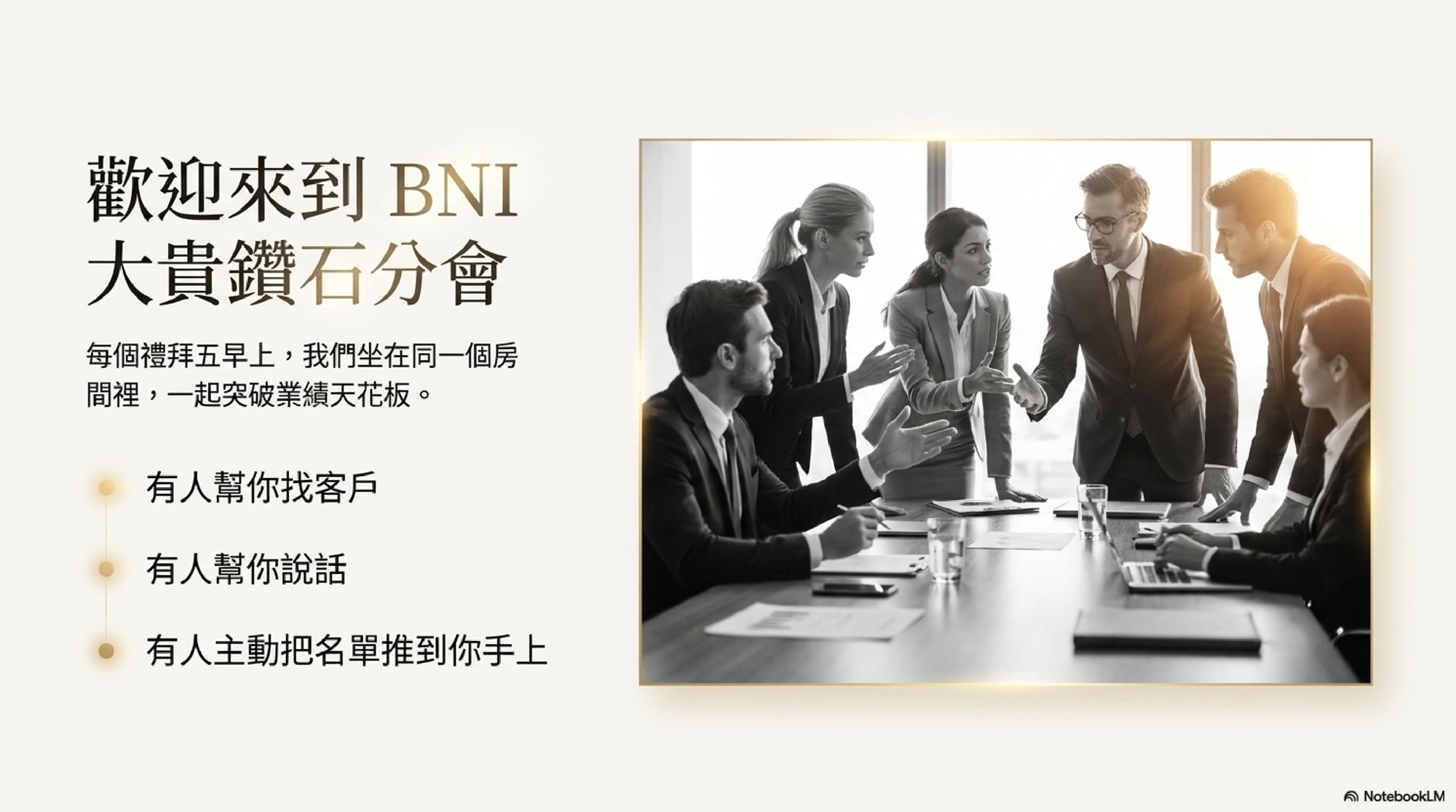 發生這樣模式的這個房間,叫做「BNI 大貴鑽石分會」。