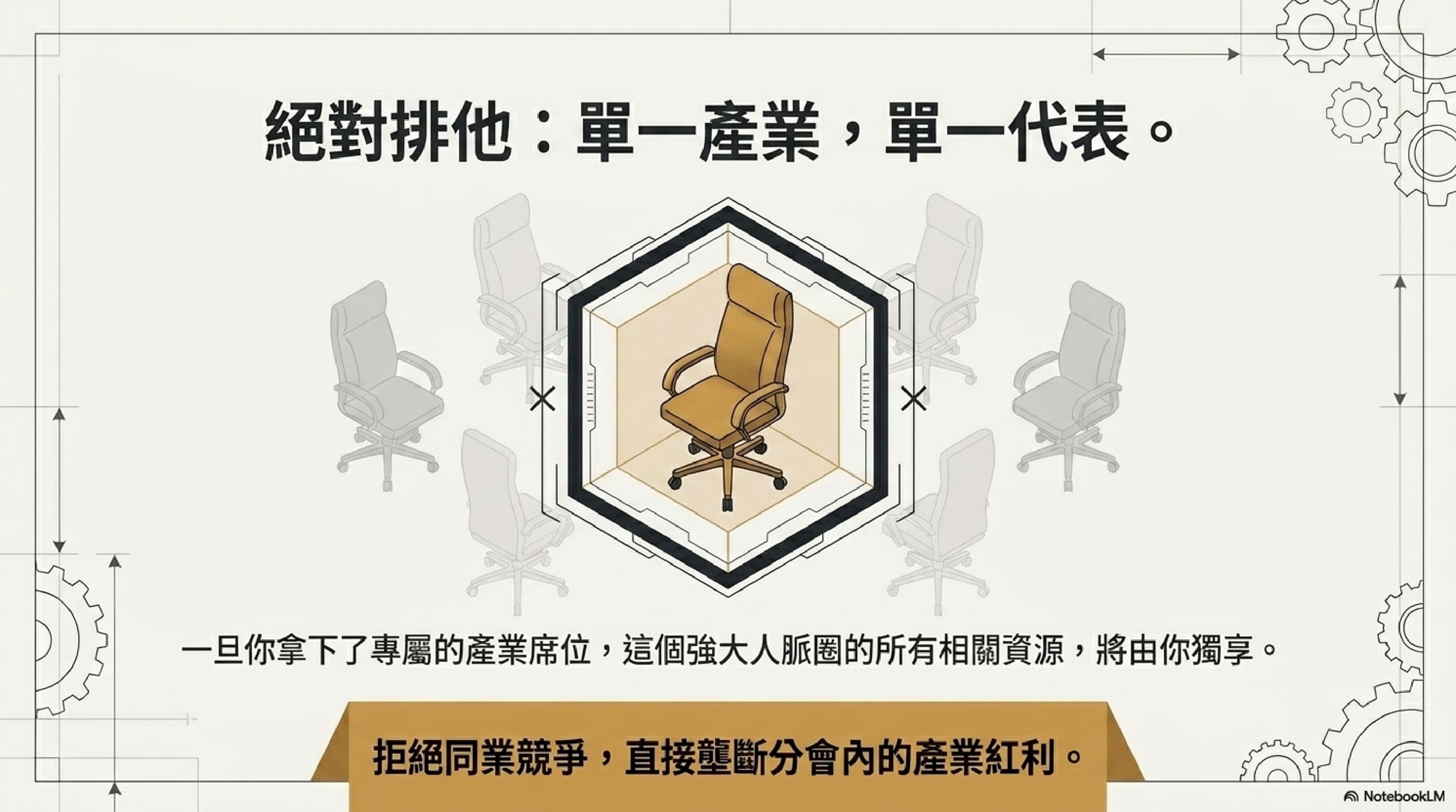一旦你拿下了專屬的產業席位,這個強大人脈圈的所有相關資源,將由你獨享。