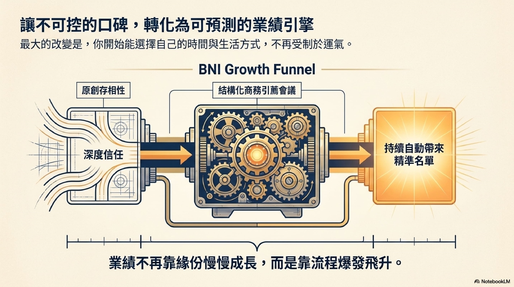 它之所以有效,是因為它把「人情口碑」變成了系統——有規則、有紀律、有效率,讓人們的業績不靠緣份慢慢成長,而是靠流程爆發飛升。