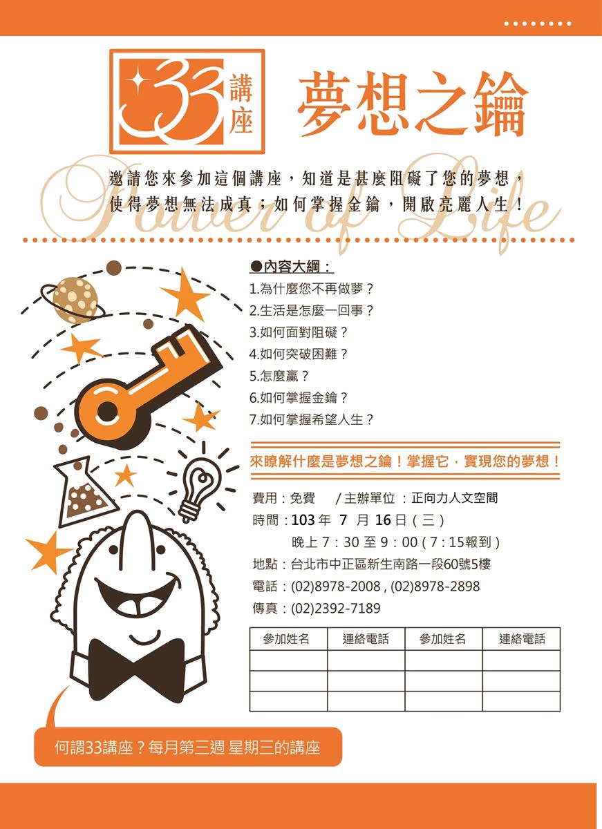 1個半小時「夢想之鑰」幫你找回生命熱忱,並了解如何讓生命過的興盛繁榮!