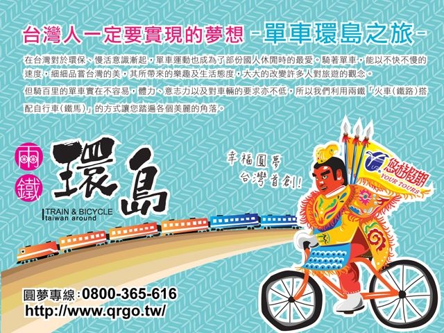 (費用為單人費用,包含台灣鐵路局列車、萬元單車任租賃、星級飯店兩人房住宿、各地風味餐及地方餐廳、含NTD200萬責任險暨NTD20萬元意外醫療險)