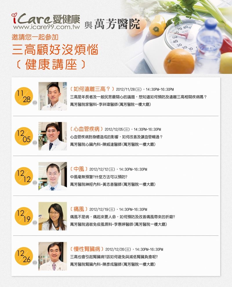 iCare愛健康與萬芳醫院邀請您一起參與三高顧好沒煩惱健康講座