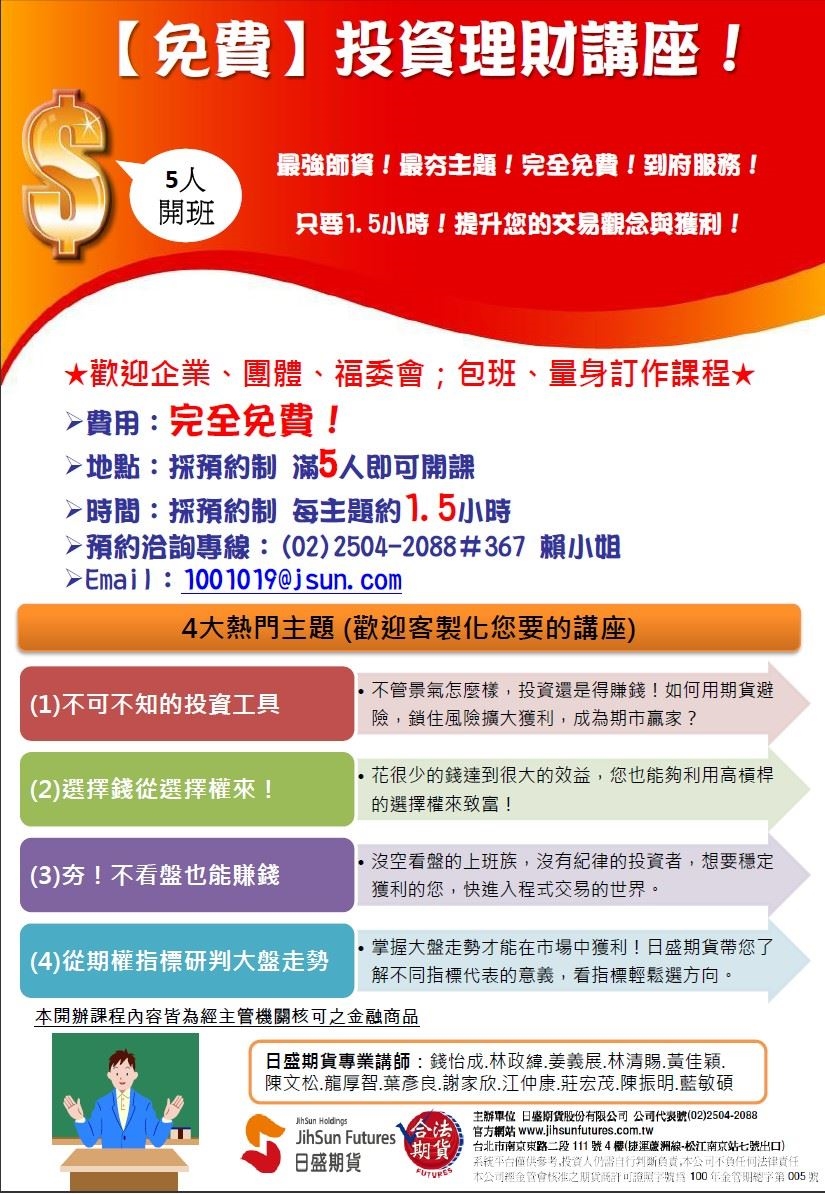 主辦單位 日盛期貨股份有限公司 公司代表號(02)2504-2088