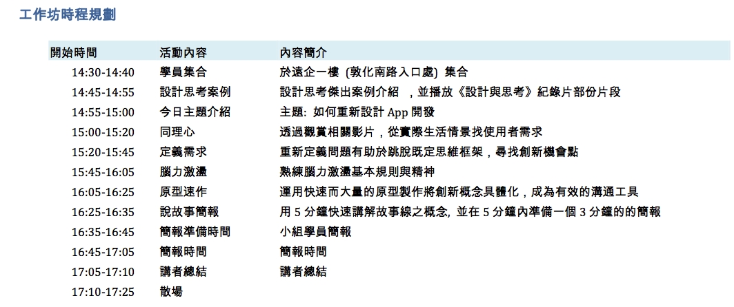 - 工作坊主題:以 App 快捷開發為例,體驗設計思考創新流程
