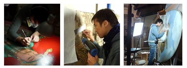 ---技巧示範:暫時性加固、文物彩繪層(包含龜裂紋的整平以及裂縫填補等)加固、觀察畫作黴菌的孳生情形。